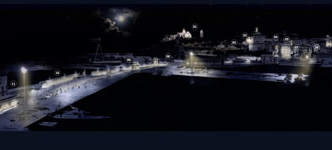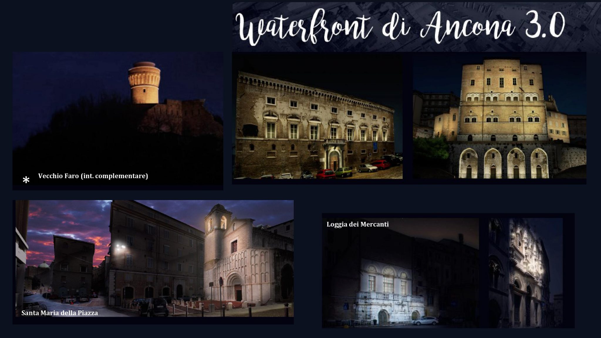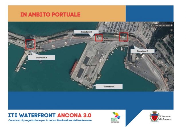 Ben 350 punti luce ridisegneranno il profilo e la zona più antica e pregevole della città”. La nuova illuminazione sarà caratterizzata dalla riduzione dei consumi energetici (fonti luminose ad alto risparmio e alta durata, con notevole riduzione dell’inquinamento luminoso) ma anche quelli della valorizzazione di quest’area che si avvia verso una importante trasformazione e rifunzionalizzazione, e alla non meno importante e parallela attivazione di servizi tecnologici integrati, in termini di sicurezza e fruibilità (wi-fi), necessari in un’area portuale e di grande movimento passeggeri e merci. L’investimento per la nuova illuminazione – che interesserà un percorso che dalla lanterna si snoda fino a piazza della Repubblica e di lì a Porta Pia, interessando anche il Duomo, Santa Maria della Piazza, Loggia dei Mercanti, Arco Clementino e Arco di Traiano e la via Maestra, da piazza del Senato a piazza della Repubblica – è pari a 2 milioni e 260.000 euro. L’intervento dovrebbe iniziare nella seconda metà del 2018 ed avere una durata di 18 mesi. Il cantiere porterà alla demolizione anche delle attuali e antiestetiche “torri-faro” distribuite lungo l’arco portuale, come quella a ridosso dell’Arco Clementino.