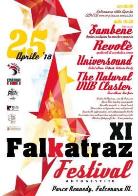 Per la Festa della Liberazione torna anche quest’anno al parco Kennedy di Falconara il raduno del Falkatraz Festival, giunto all’XI edizione. Ideato e curato dall’associazione Falkatraz onlus, per la costituzione di spazi pubblici, con il sostegno di Anpi, La Grancia, Amministrazione comunale e CSV Marche (Centro Servizi per il Volontariato), l’evento animerà il cuore verde della città, all’insegna di  memoria, aggregazione, arte e musica (ingresso libero). Dopo la partecipazione, con “Falconara città aperta”, al corteo verso piazza Mazzini (ore 10,30), per la cerimonia ufficiale con l’Anpi, e il pranzo sociale autogestito al parco (presenti baretto sociale e foodtruck “Noatri”), dalle 14,30 in poi l’evento si animerà con mercatino di autoproduzioni artigianali, banchetti informativi e mostra fotografica, laboratori, area bambini, spazio open mic hip hop emergente, interventi da “Radio Falkatraz”, dimostrazioni di live painting e presentazione delle polisportive antirazziste locali di Jesi, Ancona e Falconara e dei progetti sociali con richiedenti asilo del Gus (Gruppo umana solidarietà). Nel lungo pomeriggio all’aperto, si susseguiranno diversi momenti di spettacolo e musica dal vivo. Torna, a grande richiesta, per il sesto anno di fila, il suggestivo spettacolo di nuovo circo e acrobatica aerea della compagnia “Revolè”; mentre protagonisti dei concerti saranno tre diversi gruppi marchigiani, con proposte musicali differenti, accomunati dalla presentazione di un nuovo album in uscita: il gruppo folk “Sambene”, con chitarra, fisarmonica, tamburelli e due voci femminili grintose e raffinate, che presenteranno il loro primo disco di inediti “Sentieri partigiani, tra Marche e memoria”, nato dall’intento di salvare dall’oblio fatti e personaggi della resistenza marchigiana; la band “Universound”, progetto formato da cinque elementi, che abbracciano e scivolano tra stili diversi e contaminazioni, con l’album di debutto “Elefunk”; e infine il sound dub ed elettronico di “The Natural Dub Cluster”, la più riconosciuta band del panorama underground marchigiano, con all’attivo il quarto album “Biosfear”.