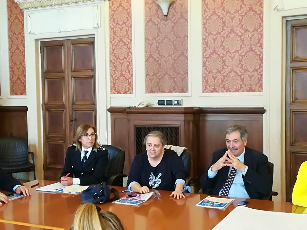 Il comandante della polizia municipale Liliana Rovaldi, il sindaco Valeria Mancinelli, il vicesindaco Pierpaolo Sediari illustrano le novità della fiera 2018
