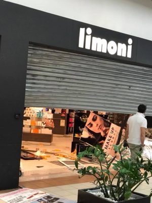 Spaccata nella notte al centro commerciale Il Maestrale, nel mirino dei ladri la profumeria Limoni, foto Facebook di Andrea Assicurato