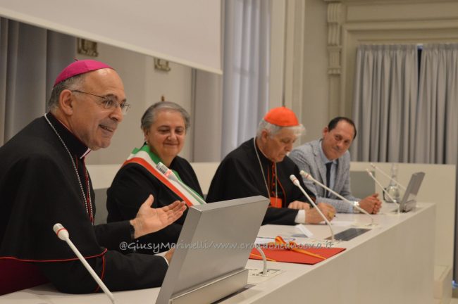 Da sinistra, monsignor Spina, sindaco Mancinelli, cardinale Menichelli, il presidente del Consiglio comunale Simone Pelosi