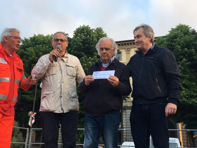Il vincitore Giorgio Moretti con a destra il presidente della Croce Gialla Alberto Caporalini e Claudio Comirato