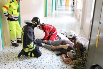 Come si muoverebbe la macchina dei soccorsi se accadesse un evento sismico di magnitudo 5.1 con epicentro sulla costa tra Marcelli e Porto Recanati e le richieste di aiuto arrivassero dall’Istituto scolastico ‘Einstein Nebbia’ di Loreto? Lo scenario è stato simulato oggi nell’esercitazione di protezione civile ‘Lauretum 2’, promossa e organizzata dal Comune di Loreto in collaborazione con l’Aeronautica Militare e la Protezione civile cittadina.Coinvolti anche la Croce Rossa Italiana, vigili del fuoco, Carabinieri e Polizia Municipale, Prefettura di Ancona, con la partecipazione dell’Istituto scolastico, che è stato ‘evacuato’, mentre i dispersi sono stati cercati con squadre di soccorso e anche con l’ausilio delle squadre cinofile dei vigili del fuoco e della Croce Rossa. Il Centro di Formazione Aviation English (Cen.For.Av.En.) di Loreto è stato configurato come base logistica per l’allestimento di una postazione medica avanzata e come area di atterraggio di un HH-139 dell’83/o gruppo del 15/o Stormo di Cervia (FC) e di un elicottero AB-412 dei Vvf.