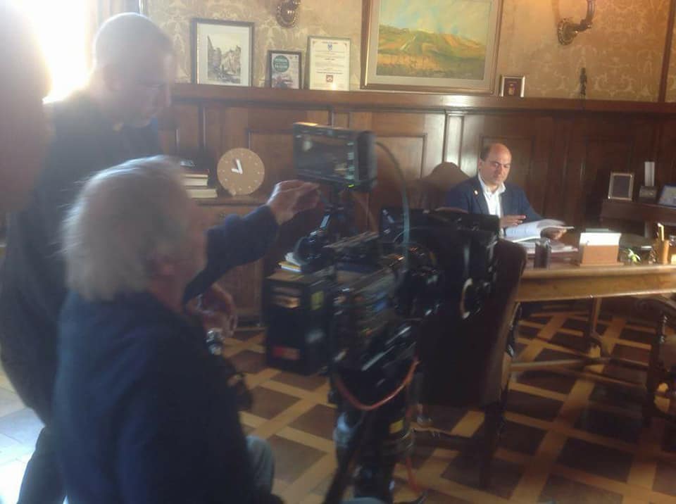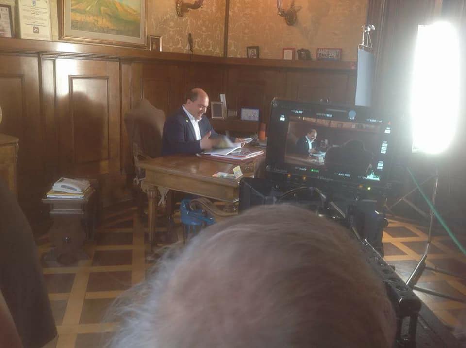 OSIMO - Tra le prime scene girate del film prodotto dalla Ventitre srl, quella con il primo cittadino di Osimo intento a lavorare nel suo studio a palazzo comunale. Lui ci ha scherzato su sui social media