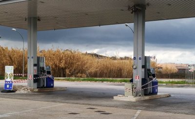 Le colonnine bancomat danneggiate del Q8 di via Farfisa a Camerano