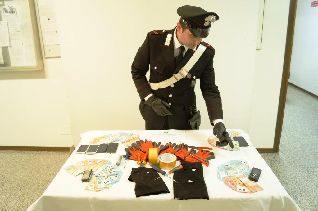 IN FUGA DOPO IL CAMBIO DI ABITI – Questo era il modus operandi messo in atto ad ogni colpo dai banditi. Una volta accertati che gli stessi potessero portare a termine un furto proprio nel distributore adiacente, sono stati allertati dai carabinieri di Osimo i colleghi della Compagnia di Fano. Si provvedeva a circondare l’intera area impedendo ogni via di fuga, posizionando i mezzi militari a debita distanza, mentre quelli dei rispettivi Nuclei Operativi nelle immediate vicinanze al fine di controllare le “mosse” dei criminali scesi dall’auto e subito messisi all’opera per scardinare una colonnina self-service e a commettere il furto di denaro contante che vi era contenuto. Le indagini permettevano inoltre di accertare, che i tre individui, visti scendere poco prima dalla Bmw, erano tutti travisati con guanti di colore rosso calzati, e, una volta usciti dalla sterpaglia si dirigevano proprio verso il distributore Ip Matic dove scassinavano la testata Self Servizi utilizzando arnesi da scasso nonché del biadesivo, usato per far attaccare le banconote ed asportarle della cassaforte.