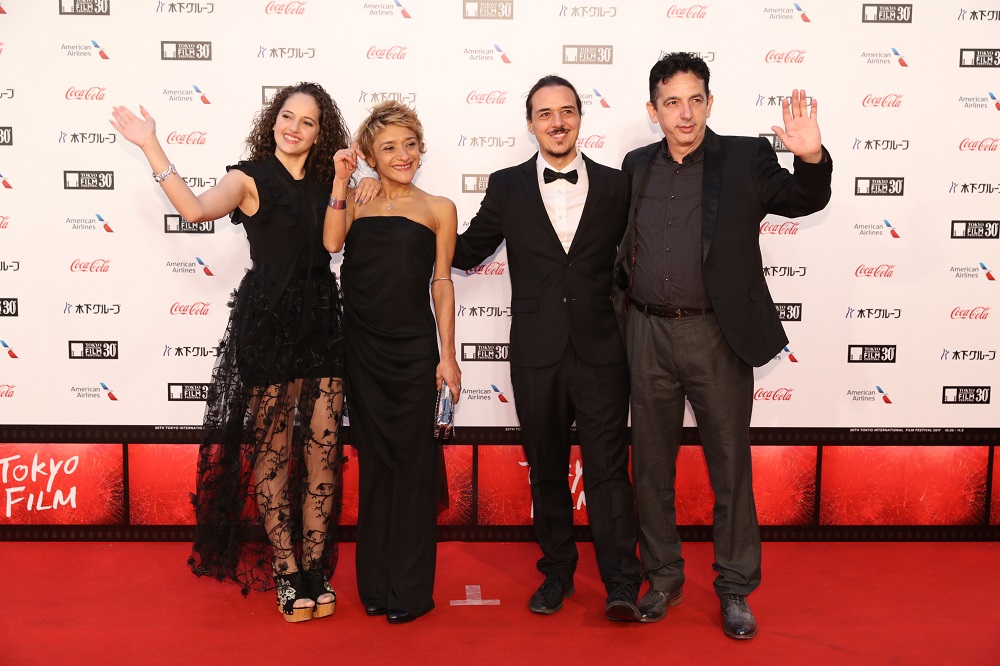 Da sinistra, Sharon Caroccia, Silvia Luzi, Luca Bellino e Rosario Caroccia sul red carpet del Tokyo Film Festival