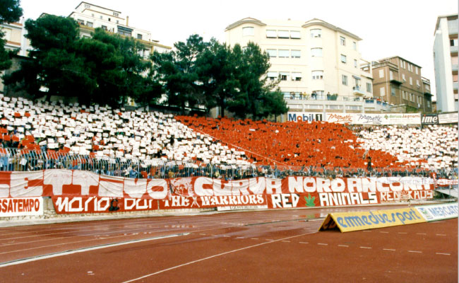 La presentazione del progetto del dorico nella giornata Amarcord. Per l’ultima casalinga in campionato, il derby coi Portuali, l’Anconitana reduce dal poker di Belvedere, chiama a raccolta il cuore biancorosso. Le vecchie glorie in tribuna e i giovani del vivaio in campo prima della stracittadina. Una festa nella festa visto che i dorici hanno già vinto il campionato un mese e mezzo fa. E con la Promozione (quella con la P maiuscola) già in tasca adesso la società lavora per il doppio salto. Intanto in campionato la squadra di Lelli non molla un centimetro e sabato scorso ha calato il secondo poker consecutivo liquidando anche la pratica Belvedere. Mai in discussione il risultato. Ad aprire e chiudere le marcature Fernandes Cardoso, alla prima doppietta italiana della sua carriera iniziata nel suo Brasile. In mezzo il gol numero 31 del capocannoniere del torneo Salvatore Mastronunzio che eguaglia il record di Yuri Costieri, col Barbara bomber assoluto della categoria, e proietta la Vipera a -11 dalle cento reti in maglia biancorossa. A segno anche Apetzeguia che firmando il gol dello 0-3 porta a 17 centri il suo bottino personale. La coppia d’attacco ha segnato quasi la metà dei 91 gol totali di una squadra che può chiudere il campionato, già vinto matematicamente, con oltre 90 punti. Una vittoria roboante alla quale partecipano tante seconde linee a causa dei numerosi infortuni che hanno ridotto all’osso la rosa a disposizione di mister Lelli. Domani alle 16.30 al Del Conero è in programma il derby coi Portuali. All’andata finì con uno storico 4-4. Una partita infuocata. L’Ancona pur soffrendo l’aveva messa in tasca e conduceva per 4-2. Ma nel finale con due calci piazzati i Dockers hanno acciuffato il pari. Insomma ci sono tutti gli ingredienti per un’altra bella sfida che all’andata si era animata anche sugli spalti. Nulla di grave ma l’ennesima dimostrazione della difficoltà di coagulare gli anconetani sotto l’effige della prima squadra della città. Ad ogni modo i Portuali con 44 punti si giocano un posto nei play off. L’Anconitana ne ha quasi il doppio (87). Ma nella stracittadina diventata un vero e proprio derby per la categoria, come all’andata, può succedere di tutto. Ricco anche l’aperitivo dell’ultima gara interna dei biancorossi. Alle 15 conferenza stampa nella sala “Sergio Roscani” dello stadio Del Conero. Presenti il Presidente dorico Stefano Marconi, il Sindaco di Ancona Valeria Mancinelli, il Vice Sindaco Pierpaolo Sediari e l’assessore allo Sport Andrea Guidotti. All’oggetto Progetto di ristrutturazione dello Stadio Dorico; Attività settore giovanile; Ripescaggio al campionato di Eccellenza. L’US Anconitana precisa inoltre che “alla conferenza stampa sono stati invitati anche gli altri candidati sindaco alle prossime elezioni amministrative del Comune di Ancona, ma ribadiamo che è una conferenza stampa, non un incontro pubblico e che solo i giornalisti accreditati potranno rivolgere domande ai relatori”. Prima del match (a partire dalle 15) esibizione dei baby calciatori biancorossi e sugli spalti hanno già garantito la presenza alla festa “Anconitana ieri, oggi, domani e… per sempre” tra gli altri invitati, mister Gigi Simoni, tecnico della seconda promozione nella massima serie del 2003. Farà di tutto per esserci anche lo storico capitano Massimo Gadda, impegnato ancora sulla panchina dell’Imolese che disputa i play off di Serie D da seconda classificata. Pressoché confermata invece quella di Mauro Bertarelli, Gianluca De Angelis, Roberto Lorenzini e Stefano Fontana protagonisti della prima scalata in A del 1992.