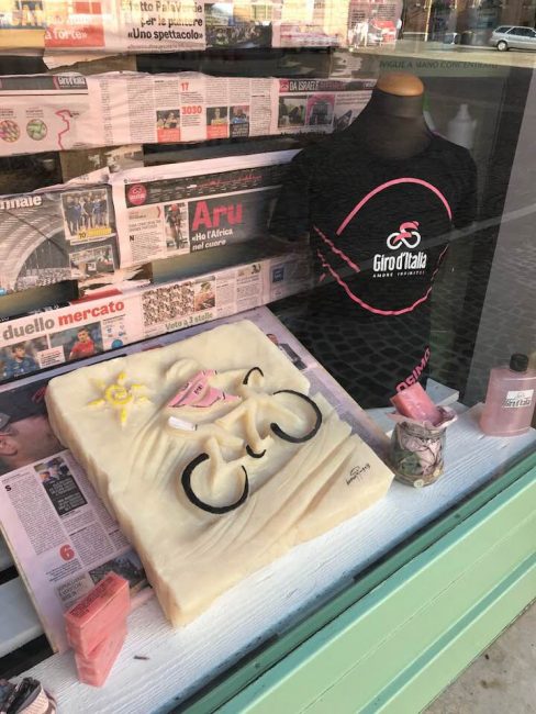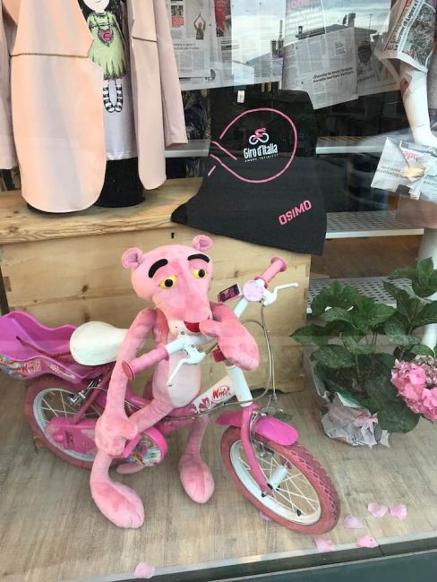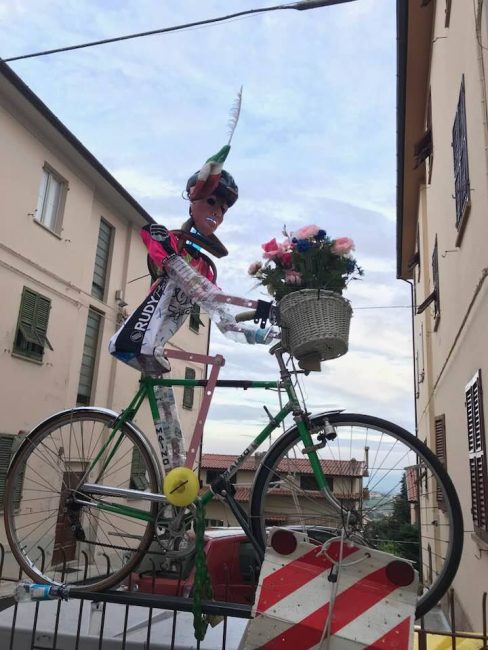 Giro d’Italia, un condominio di via Guazzatore con addobbi ispirati alla carovana rosa (foto Bruno Severini)