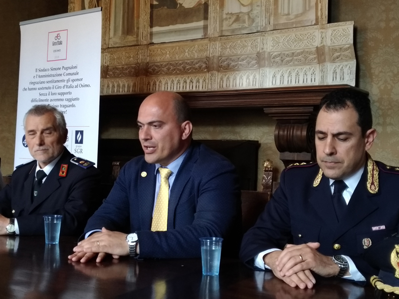 Osimo, palazzo comunale, un momento della conferenza stampa di stamattina sul Giro d’Italia