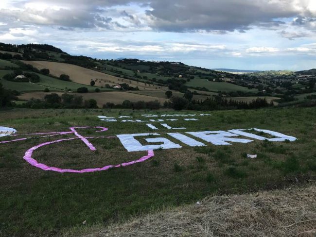 LO STRISCIONE GOLIARDICO RIMOSSO – Curiosità: tra manifesti, palloncini e ombrelli rosa che adornano il centro storico, nel pomeriggio di oggi è spuntato uno striscione goliardico dedicato ai ciclisti e sistemato sul balcone di un palazzo di via Costa del Borgo da un osimano appassionato di sport. Gli agenti della Polizia locale lo hanno rimosso perchè la frase che conteneva (“tenete duro che daccapo è pieno di f…”) è stata ritenuta troppo hot, audace e al limite dell’offensivo. La decisione di far ‘ammainare’ e togliere lo striscione, rimbalzata come notizia poco dopo su facebook è stata fischiata e stigmatizzata da un coro social di dissenso.