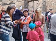 CAROVANA ROSA – Tra gli oltre 10mila spettatori che oggi pomeriggio hanno invaso il centro per assistere all’arrivo della 16° tappa del Giro d’Italia, anche la signora Kanai arrivata dalla Shikoku con una raccolta fondi per sostenere la causa della famiglia dell’Aquila di Filottrano a sostegno delle vittime della strada