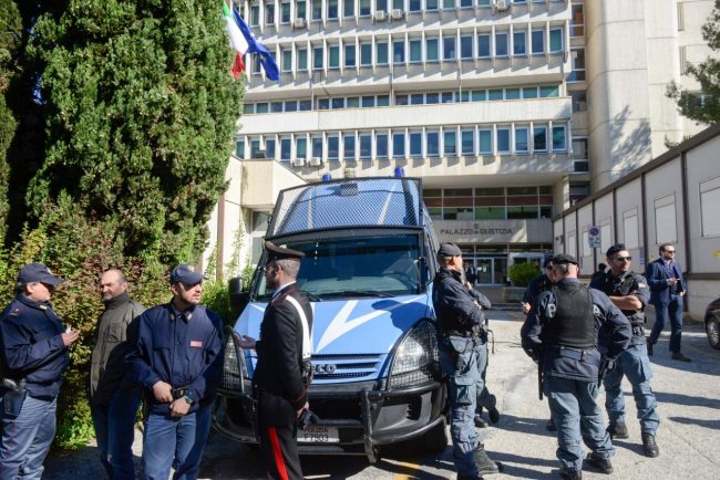 L’arrivo di Traini in tribunale