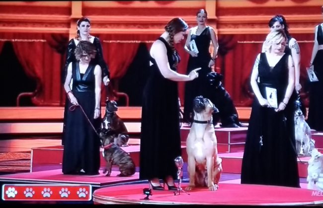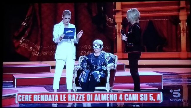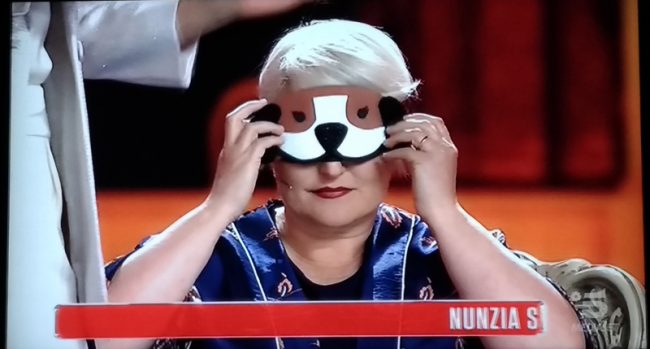 “Non è che non credo in te – ha precisato la De Filippi – ma perdo sempre le scommesse, ti voglio portare fortuna e dico che tu sbaglierai”. Invece dopo essere stata bendata, Nunzia Marchegiani ieri sera ha riconosciuto l’abbaio di 4 cani in fila, senza fare errori: un bulldog francese, un bull mastiff, un australian catdog e un cavalier king spaniel. Cani che hanno abbaiato a comando, scelti a caso tra i 14 presenti in studio da Maria De Filippi. “La scommessa è stata vinta, è veramente brava Nunzia” ha sottolineato la Hunziker tra gli applausi. Dopo l’appelli a non abbandonare i cani d’estate, Maria De Filippi ha pagato pegno per aver perso la scommessa ed è stata costretta, tra le risate del pubblico e degli spettatori a casa, a ripetere al microfono, in maniera goffa, una frase con la bocca bloccata da un divaricatore palatale da dentista.