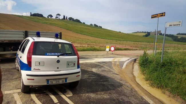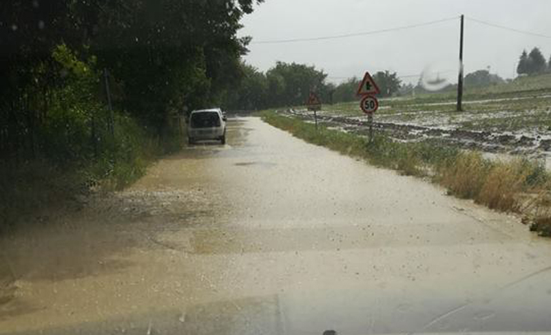Un acquazzone con una grandinata si è abbattuto oggi pomeriggio per un quarto d’ora, intorno alle 15.30 su Filottrano. Tra lampi e tuoni fragorosi i grossi chicchi di grandine sono caduti su case e strade. Non sono stati segnalati danni ma via Troscione si è allagata e la presenza copiosa di fango ha consigliato al Comune di chiuderla al transito della auto dopo un sopralluogo della Polizia locale e della protezione civile. Il livello del corso d’acqua che la costeggia si è infatti alzato oltre il limite di guardia. Alle 20 è stata il sindaco Lauretta Giulioni a comunicare che “a seguito delle condizioni meteo avverse, per ragioni di sicurezza, sono state chiuse le seguenti strade: Piana Troscione; Marinuccia; Ponticelli. Segnalo anche Via Italia Via Saltregna Alta e San Lorenzo che presentano condizioni di criticità per il transito. Vi invito alla prudenza ed alla cautela” Nel tardo pomeriggio una squadra dei vigili del fuoco di Osimo è intervenuta a Filottrano per una serie di smottamenti e allagamenti..