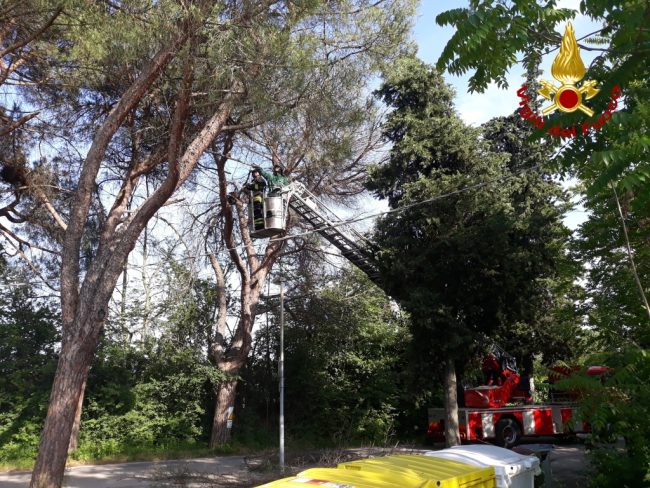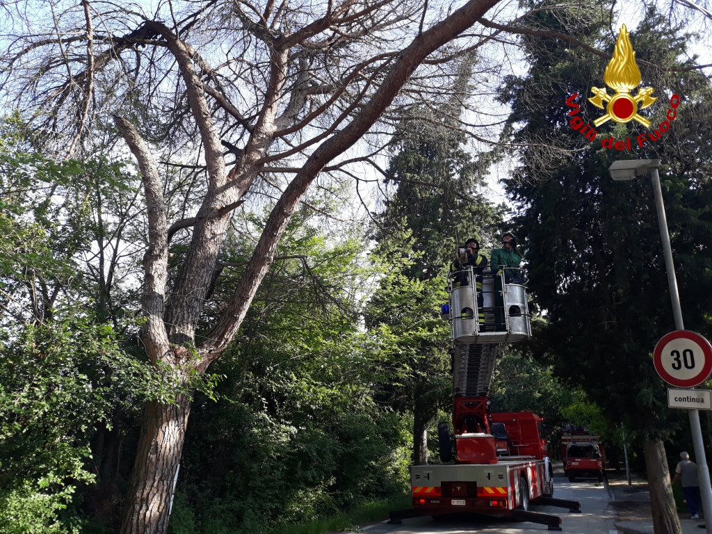 I vigili del fuoco sono intervenuti questo pomeriggio per tagliare dei rami pericolanti sulla strada di accesso al cimitero di Jesi. La squadra dei vigili del fuoco è intervenuta anche con l’autoscala, ha rimosso i rami immediatamente pericolanti in attesa della rimozione completa da parte del personale comunale .La strada è stata chiusa per circa un’ora e mezza.
