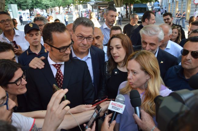 ANCONA – La leader di Fratelli d’Italia nel pomeriggio a piazza Roma per sostenere il candidato sindaco di civiche e centrodestra. “Tombolini elemento di innovazione e concretezza, le elezioni dimostrano il sentimento diffuso di fiducia degli italiani nel centrodestra” commenta l’onorevole