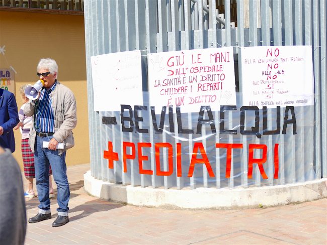 Il rappresentante del Forum per la difesa della sanità pubblica, dicharandosi al fianco degli organizzatori della protesta come tempo fa fece per la mobilitazione per il punto nascita ha sottolineato le politiche in corso di “depauperamento delle strutture ospedaliere e contemporaneamente l’ingresso di ingresso dei privati nella sanità pubblica consentito dalla pdl regionale 145 del 2017. La la sanità pubblica è un diritto inviolabile, sancito dall’articolo 32 della nostra Costituzione”.
