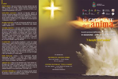Ai “Luoghi dell’anima” è stata dedicata la sesta edizione del Festival di cultura e spiritualità ideato dal cardinale Edoardo Menichelli e ampliato dall’arcivescovo Angelo Spina, che ha voluto farne una iniziativa itinerante, per cui – oltre a due incontri ad Ancona (con il filosofo Possenti e gli psicologi Risé), si sono tenuti incontri, a Castelfidardo (con il teologo Tortorella e la pedagogista Marconi), a Falconara (con il teologo Adriano Sella), a Camerano con il pedagogista Bruni) e a Osimo, si concluderà venerdì 1° giugno alle ore 17,30. Così “Le giornate dell’anima” si concludono con una conversazione del prof. Giancarlo Galeazzi, il quale parlerà nella Sala San Francesco, adiacente al chiostro della basilica di San Giuseppe da Copertino (piazza San Francesco), e, come nelle precedenti edizioni a Osimo la relazione sarà dedicata all’anima alla luce del pensiero di papa Francesco; quest’anno verterà precisamente su “la prossimità voce dell’anima”, per dire che senza la scelta di “farsi