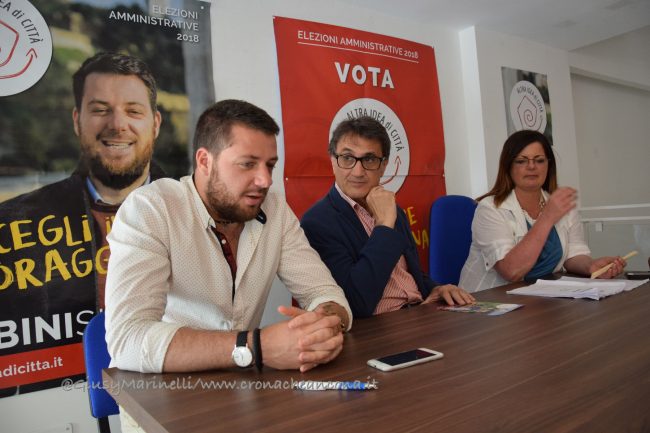 da sx il candidato a sindaco di Altra Idea di Città, Francesco Rubini, Vinicio Cerqueti, sostenitore della lista, la capolista, Katya Mastantuono