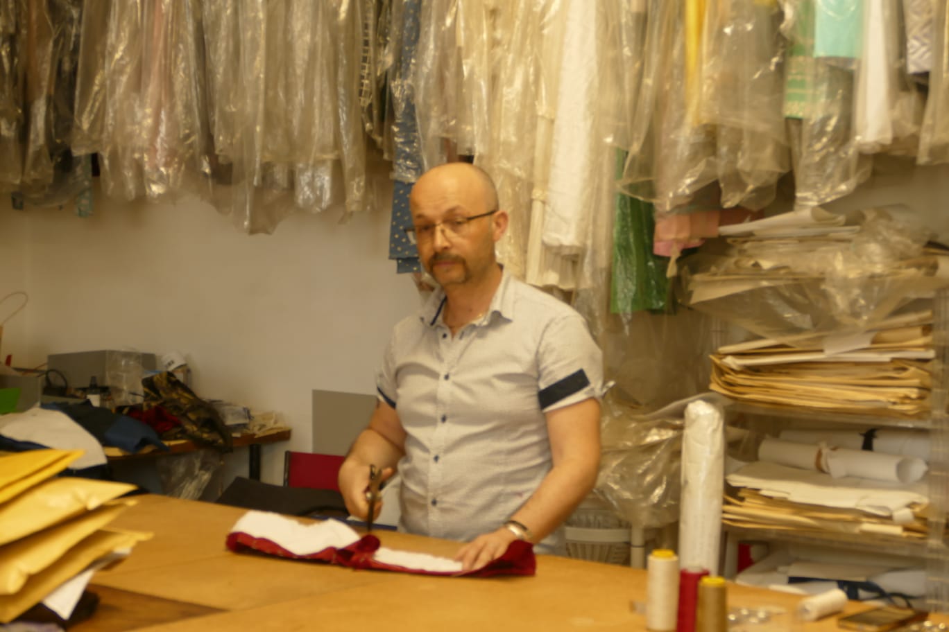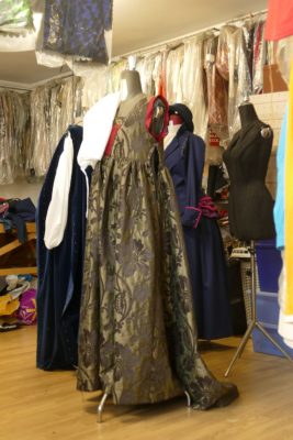 “Il costumista é colui che disegna gli abiti di scena per uno spettacolo o un film, si occupa di tutto l’aspetto estetico scegliendone lo stile, i tessuti ed i colori, previo accordo con il regista e lo scenografo. Il sarto è chi realizza l’abito “- spiega Massimo Eleonori – ” io sono entrambe le figure. A volte capita anche di dover addirittura tingere le stoffe per poter ottenere gli effetti cromatici desiderati”. ” Per realizzare gli abiti dei due Signori e dei figuranti de ‘Il Solenne Ingresso’ ho tratto ispirazione dai dipinti di Domenico Ghirlandaio, osservandone accuratamente i dettagli stilististi di quel particolare momento storico di fine ‘400. Troppo spesso il comun pensare concepisce erroneamente la professione di costumista come un’attività ludica, mentre invece, dietro alla realizzazione di ogni singolo abito vi è un’attenta ricerca storica che richiede moltissimo tempo. Il compito è quello di plasmare personaggi attraverso un approfondito studio dell’epoca in cui viene ambientata la rappresentazione. Il costumista deve rendere credibile i personaggi, farli sembrare il più naturale possibile e creare la seconda pelle che gli attori indosseranno durante la recitazione. Sono tante le fasi da compiere per arrivare al prodotto finale. Si parte dalla ricerca dei documenti, si realizza il bozzetto, si devono campionare le stoffe per poi una volta scelta la migliore tagliarla, confezionare il vestito ed arricchirlo di accessori. Occorre grande passione e grande volontà di approfondimento, fare il costumista significa saper ricominciare sempre da capo”.