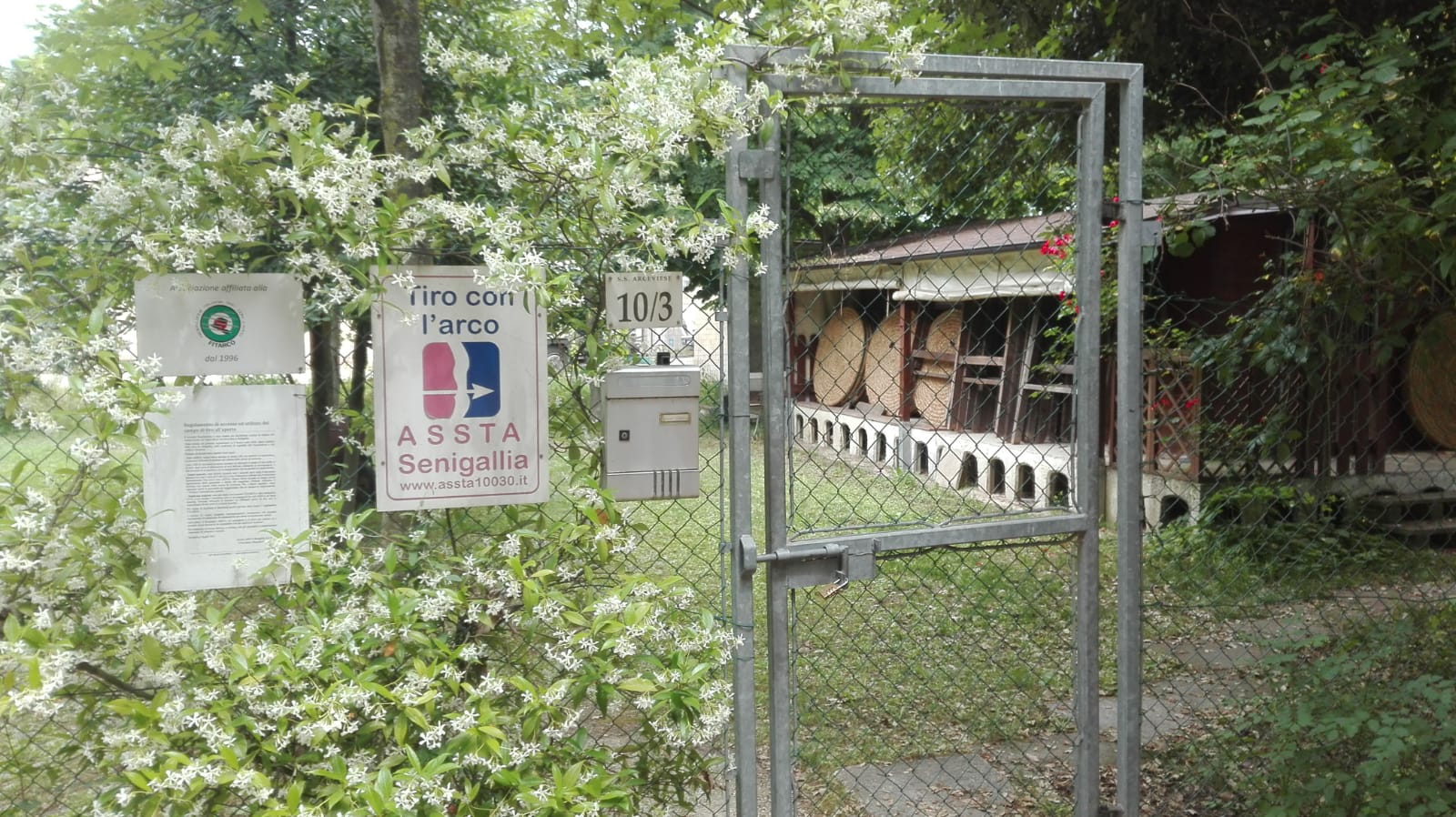 Il cancello del campo da tiro e la casetta in legno, sede dell’Assta arcieri, violati stanotte dai ladri