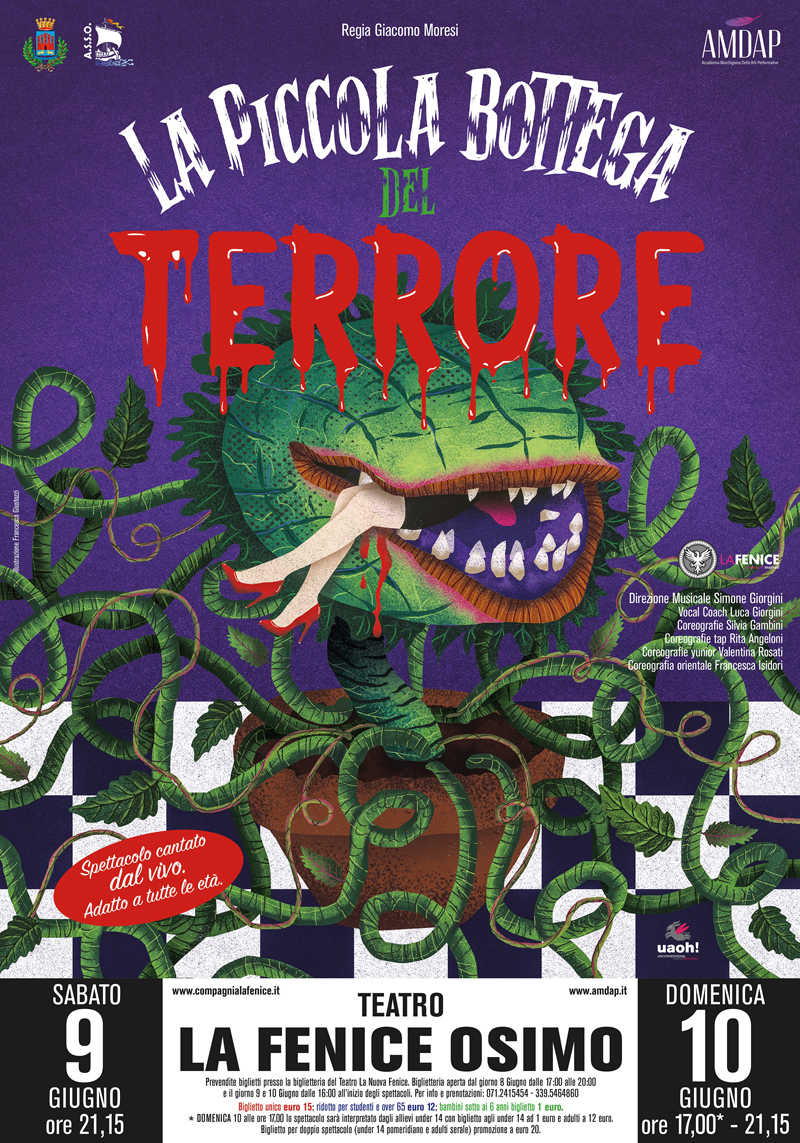 Se cercate uno spettacolo divertente con una storia unica e coinvolgente, non potete perdere il 9 e 10 Giugno al Teatro la “Nuova Fenice” di Osimo, “La piccola bottega del terrore” un concert show unico nel suo genere, un tributo al celebre film degli anni ’60 con protagonista la pianta carnivora per eccellenza. Previste 3 repliche, il 9 Giugno alle 21,15 e il 10 Giugno alle 17 e alle 21,15. Sul palco gli allievi del corso adulti e bambini dell’ Amdap (Accademia Marchigiana delle Arti Performative) e della Compagnia la Fenice diretta da Giacomo Moresi, con sede a Padiglione di Osimo, che da anni promuove il musical e il teatro a livello didattico e laboratoriale coinvolgendo tantissimi talenti osimani di tutte le età.