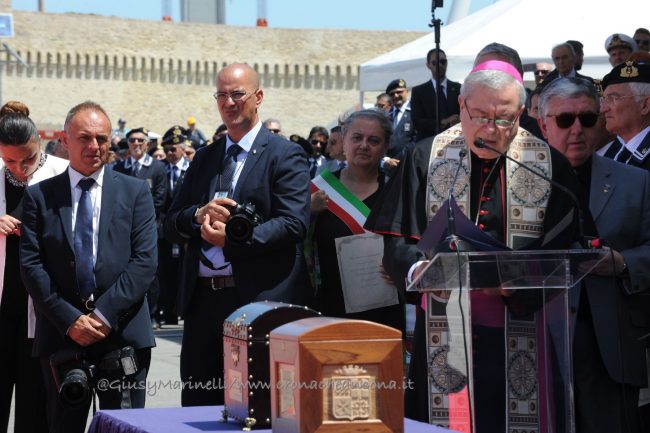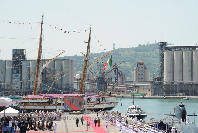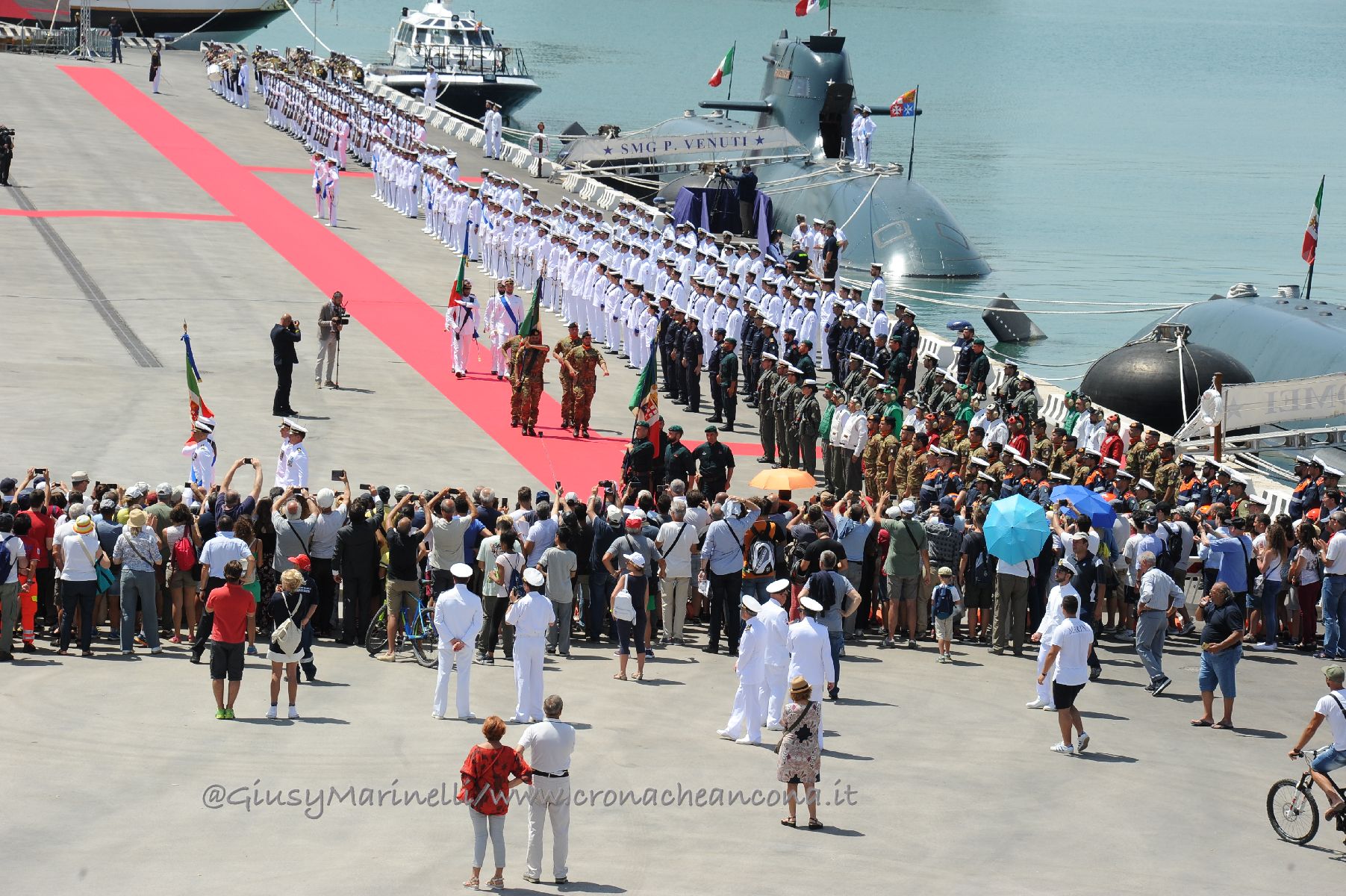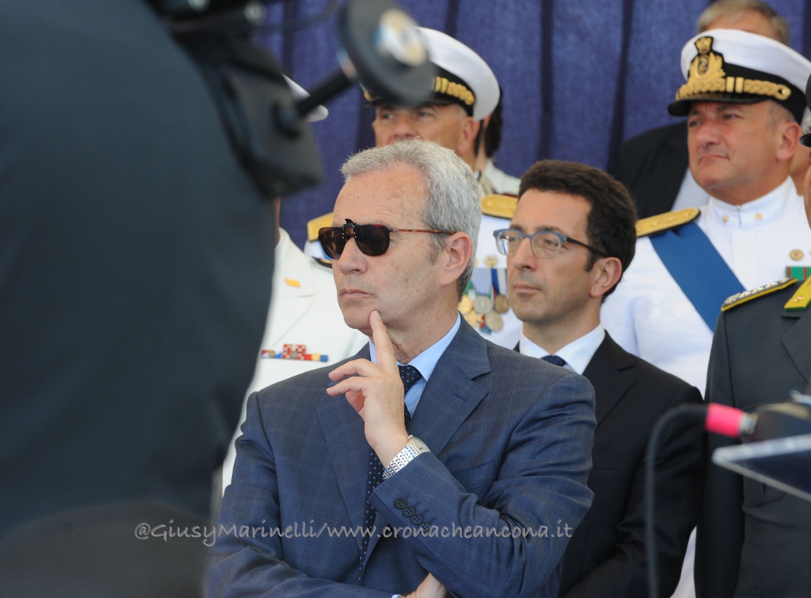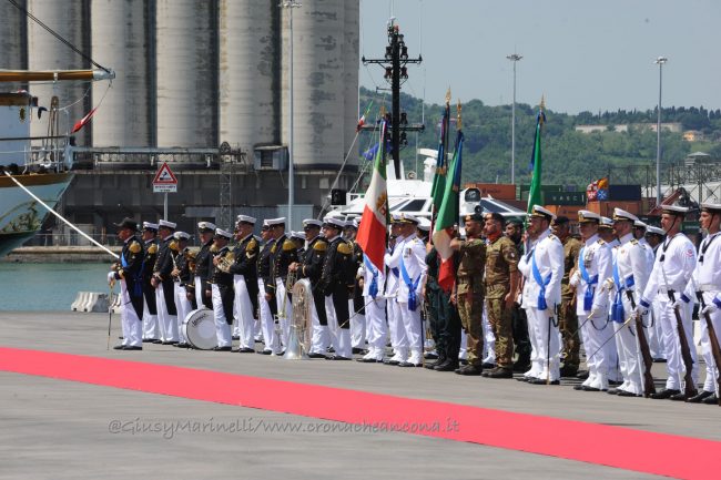 “Mi attiverò con ogni mezzo e attraverso ogni canale per avanzare la proposta di candidatura della Marina Militare e di tutte le componenti che hanno partecipato ai salvataggi al premio Nobel per la Pace. Ve lo meritate e ce lo meritiamo”. La promessa è di quelle che pesano. È la promessa che oggi ha risuonato al porto antico attraverso le parole del ministro della Difesa Elisabetta Trenta, arrivata nel capoluogo dorico in occasione delle celebrazioni per la festa della Marina e del centenario dell’impresa di Premuda per mano del capitano Luigi Rizzo, a cui è dedicato il molo che oggi ha ospitato le rappresentanze dei vari corpi della Marina e un cerimoniale che ha richiamato di fronte all’arco Clementino centinaia di persone. Nei giorni in cui imperversa la polemica per la decisione del ministro Salvini di chiudere i porti italiani all’attracco delle navi Ong che recuperano migranti in mare, fanno discutere le parole del ministro Trenta in visita nello scalo di Ancona. Il ministro ha toccato il porto anconetano poco prima delle 11 a bordo della nave Galatea. Poi, con una pilotina ha passato in rassegna ogni imbarcazione della Marina ormeggiata da giorni al molo Rizzo: dalla Crotone, alla Pedretti, passando per la portaerei Garibaldi, la nave scuola Palinuro, la Rizzo e i due sommergibili, la Venuti e la Romei. Toccata terra, ha salutato gli schieramenti e si è posizionata sulla tribuna colma di autorità civili, militari e religiose.