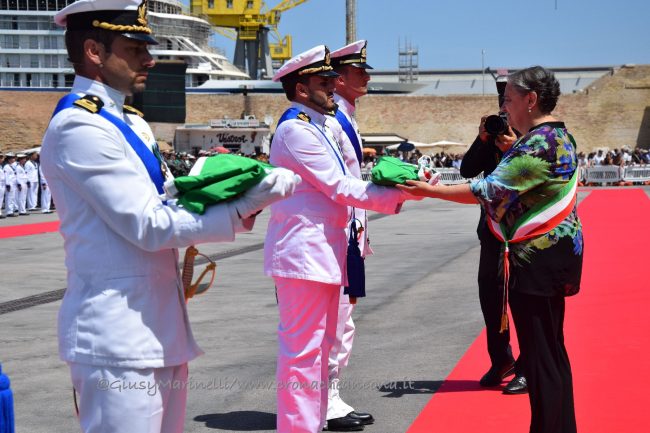 “Un saluto al sindaco e alla cittadinanza di Ancona per la stima e l’affetto nei confronti della Marina e di tute le forze armate – ha detto il ministro Trenta iniziando il suo discorso -. Oggi festeggiamo la giornata della Marina nel centenario dell’impresa straordinaria del comandante Luigi Rizzo nella acque delle Dalmazia. Proprio per sottolineare quella data abbiamo scelto questa splendida città, perchè è dal porto di Ancona che il comandante Rizzo partì per compiere quella che è passata alla storia come la perfetta impresa di Premuda”. Il ministro, alla sua seconda uscita ufficiale, ha più volte sottolineato nel suo discorso l’abnegazione e le gesta eroiche dei militari contemporanei, quelli che sono stati autori negli ultimi anni dei salvataggi di vite umane nelle acque del Mediterraneo. “Grazie per il vostro senso del dovere e grazie per il vostro coraggio. Il Mediterraneo è il mare che ha costituito un collante sociale, culturale, economico tra il nord e sud del nostro mondo. In questi anni si è trasformato in un luogo di instabilità e insicurezza. Siamo orgogliosi di quello che il paese ha saputo fare finora per sostenere operativamente l’Europa per la gestione del suo confine meridionale”. La proposta del Nobel alle forze della Marina ha proceduto le premiazione di ufficiali e sottufficiali che negli ultimi anni non hanno esitato a gettarsi in acqua per prestare soccorso a gommoni e pescherecci stracolmi di migranti all’interno del bacino del Mediterraneo. Cinque i militari insigniti dell’onoreficenza (medaglia d’oro e d’argento al valore di Marina) consegnata dal ministro. Ha chiuso la cerimonia la consegna dei cofani e della bandiere da combattimento ai due sommergibili Venuti e Romei. Ad assegnare le rispettive bandiere, benedette dall’arcivescovo Santo Marcianò (ordinario militare per l’Italia), sono stati il governatore Luca Ceriscioli e il sindaco di Ancona Valeria Mancinelli.
