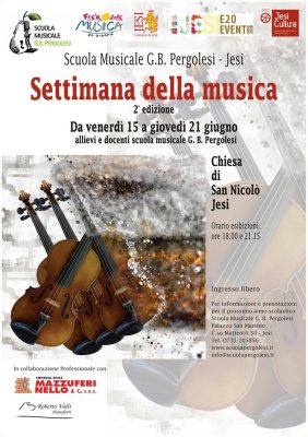 Sette giorni di concerti gratuiti tenuti dagli allievi della Scuola Musicale “G. B. Pergolesi” di Jesi. Si comincia venerdì 15 giugno dalle 18 all’interno della Chiesa di San Nicolò, in corso Matteotti, suggestiva location che per il secondo anno ospita l’iniziativa. Per un’intera settimana, alle 18 e alle 21,15 si esibiranno 130 giovani musicisti della scuola jesina, dieci insegnanti e alcuni ospiti speciali a impreziosire con le loro performance musicali e canore la settimana di eventi. In tutto 18 concerti gratuiti, un omaggio alla città da parte della Scuola Pergolesi, che da oltre 40 anni è attiva sul territorio per la promozione della cultura musicale.
