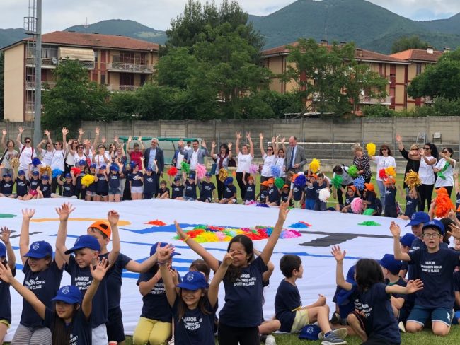 Sventola l’enorme bandiera di “Marche in movimento con lo sport di classe” sul prato del campo sportivo di Cerreto d’Esi dove oggi (mercoledì 13 giugno) circa 200 bambini hanno dato dimostrazione delle loro capacità sportive in diverse discipline ed esercizi di attività motoria. Si conclude così, con una grande festa, il primo anno del programma biennale per il potenziamento dell’attività motoria e sportiva nella scuola primaria, promosso e finanziato da Coni Marche, Regione Marche, Asur Marche, e che vede la collaborazione di Miur, Comitato paralimpico (CIP) e Centro Sportivo Italiano (CSI).