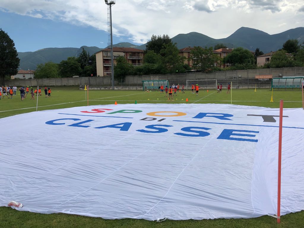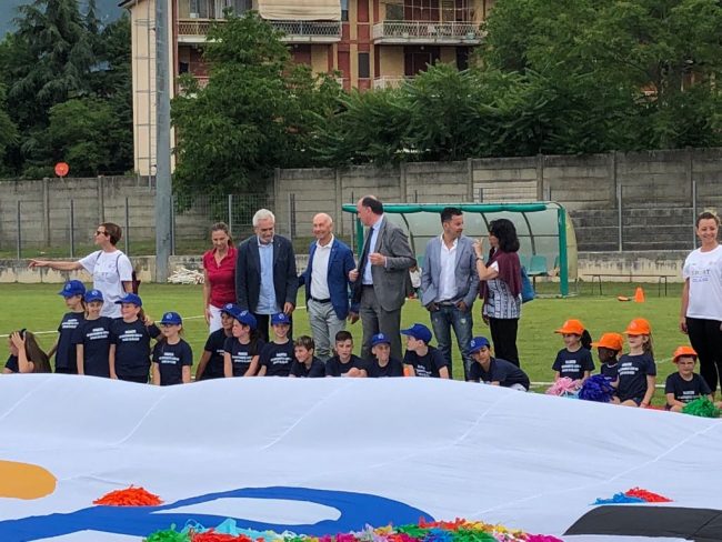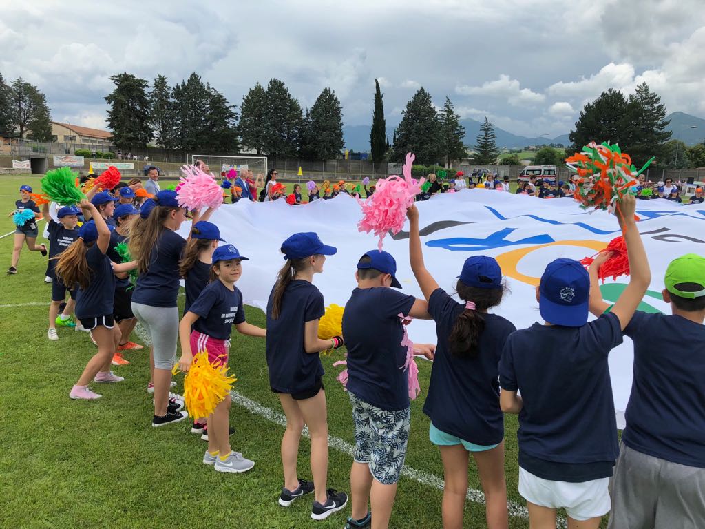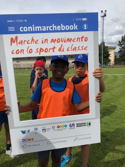 Sventola l’enorme bandiera di “Marche in movimento con lo sport di classe” sul prato del campo sportivo di Cerreto d’Esi dove oggi (mercoledì 13 giugno) circa 200 bambini hanno dato dimostrazione delle loro capacità sportive in diverse discipline ed esercizi di attività motoria. Si conclude così, con una grande festa, il primo anno del programma biennale per il potenziamento dell’attività motoria e sportiva nella scuola primaria, promosso e finanziato da Coni Marche, Regione Marche, Asur Marche, e che vede la collaborazione di Miur, Comitato paralimpico (CIP) e Centro Sportivo Italiano (CSI).