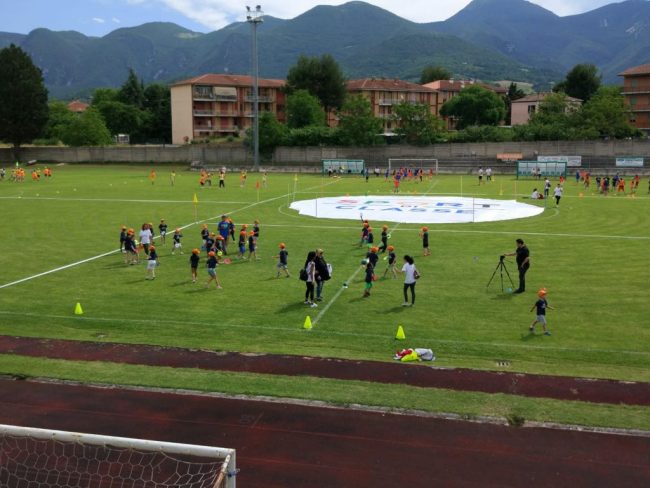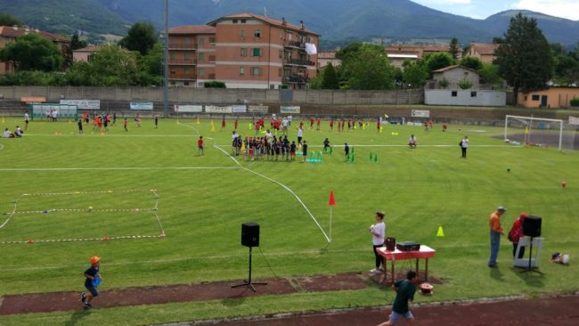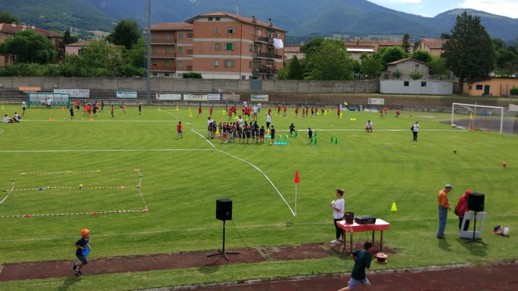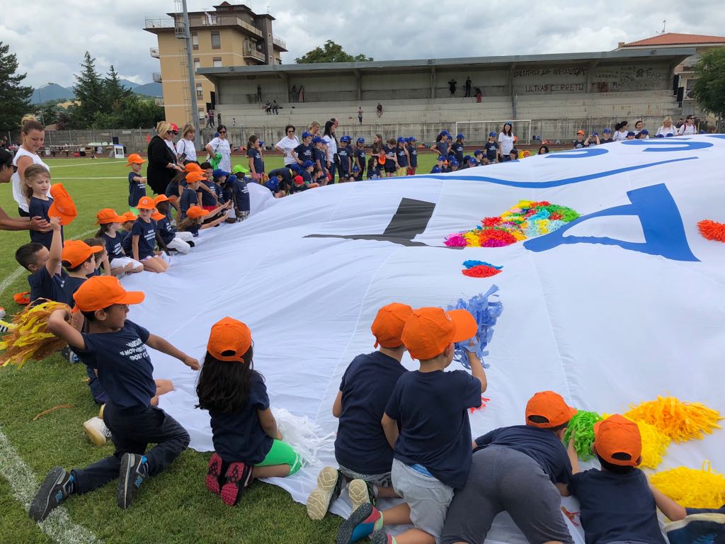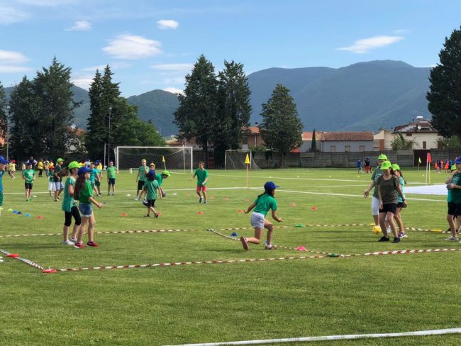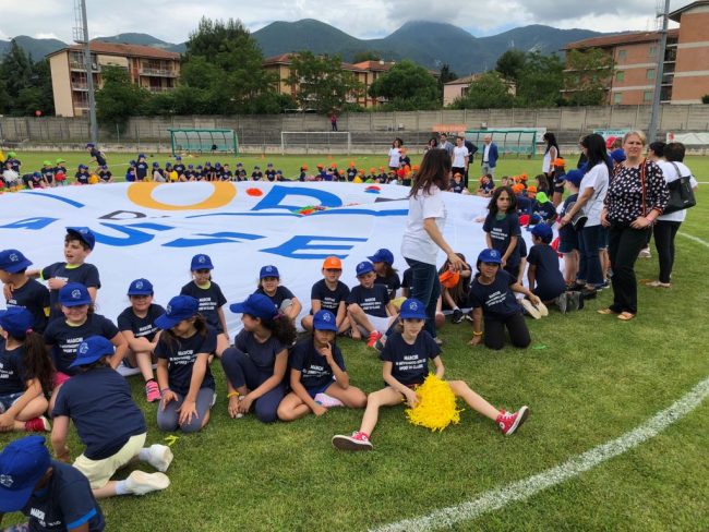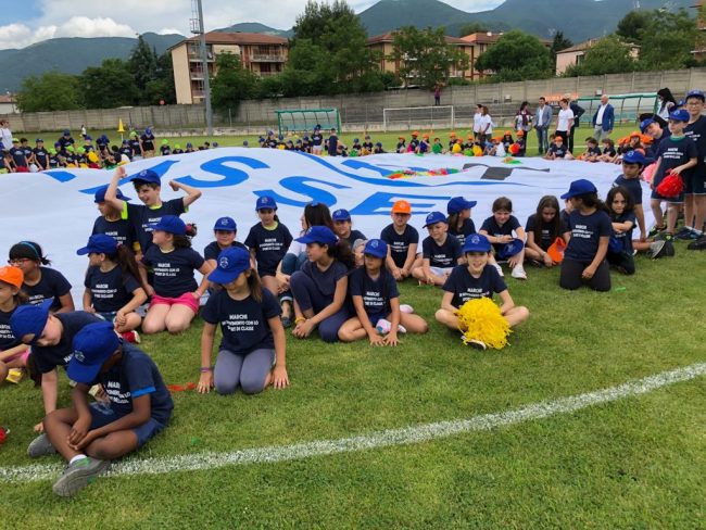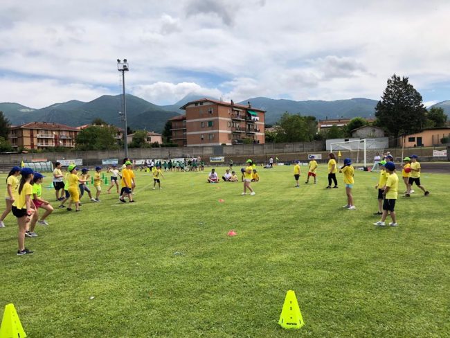Un’immagine della festa conclusiva del progetto “Marche in movimento con lo sport di classe” al campo sportivo di Cerreto d’Esi