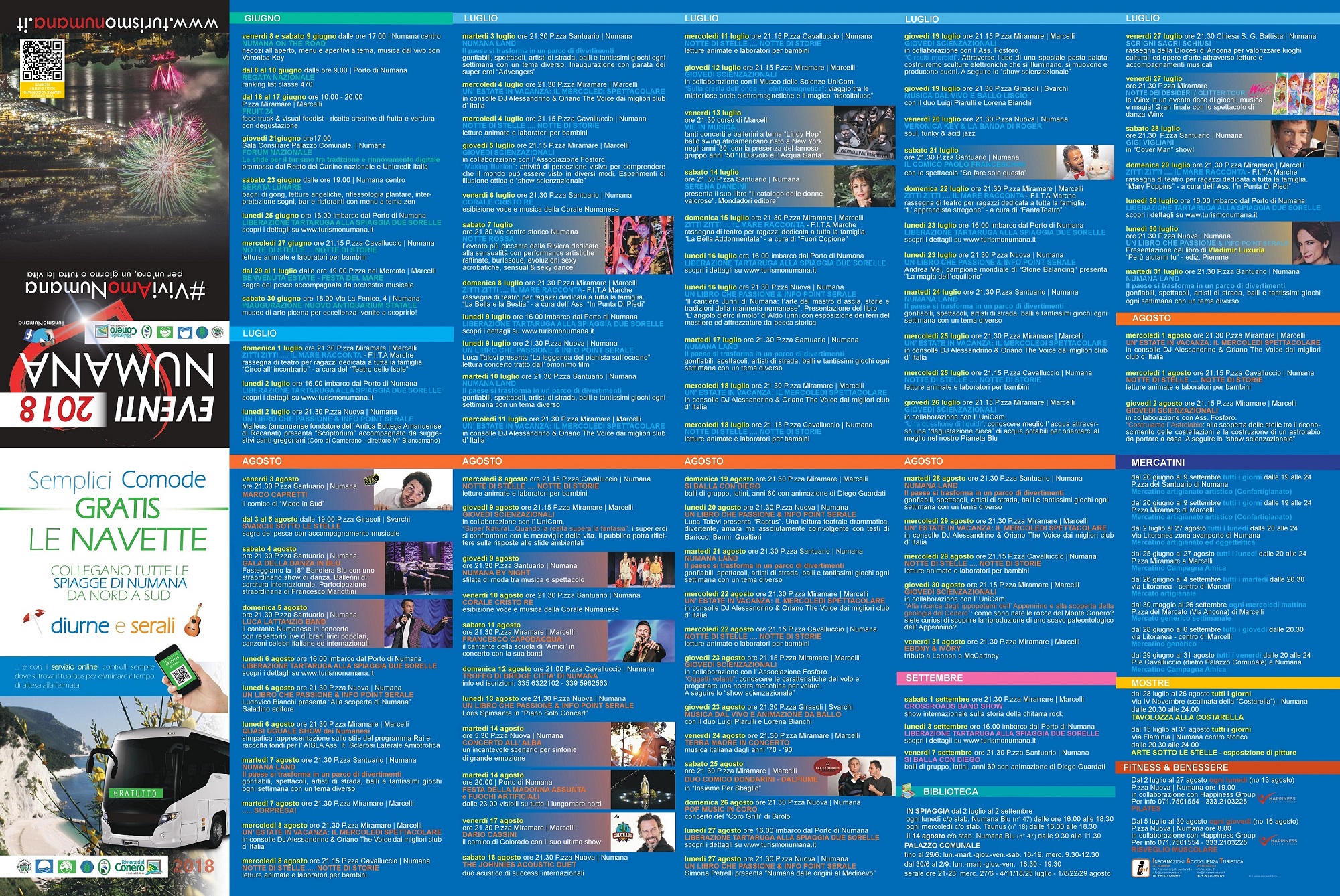 Conferme e tante novità nel piano degli eventi e del trasporto pubblico dell’estate Numanese 2018, messo a punto dall’Ufficio Turismo e dal personale IAT con lo stretto coordinamento del Sindaco Gianluigi Tombolini. Si è giunti alla quinta stagione turistica organizzata dall’attuale Amministrazione comunale, e come gli anni scorsi il binomio sponsor – tassa di soggiorno permette lo svolgimento di più di 100 eventi e l’organizzazione di 6 linee di trasporto pubblico diurno e notturno senza nessun esborso da parte della cittadinanza. “Constatato il crescente gradimento del trasporto pubblico estivo gratuito (178.000 persone trasportate nel 2017, con un + 62% rispetto all’anno di inizio del servizio), – fa sapere una nota stampa del Comune di Numana – si è deciso per il 2018 per un suo ancora più deciso rafforzamento: gli autobus utilizzati nelle linee di maggior utenza saranno i quelli urbani euro5 a grande capienza, che ogni 30 minuti faranno tappa nei 3 parcheggi scambiatori del Piazzale IAT (centro paese), Piazzale Adriatico e Via Ancona (Marcelli), per sgravare ancora di più il lungomare dal traffico. Sono stati introdotti dei servizi di corse settimanali tra Numana e Portonovo, Loreto e Grotte di Frasassi, per collegare la Riviera alle località con più attrattiva turistica delle Marche e permettere ai turisti di visitarle lasciando l’auto in Hotel, con un indubbio vantaggio ambientale. Anche quest’anno si avrà la possibilità di monitorare l’arrivo del bus scelto attraverso il QR CODE inserito nella locandina per eliminare i tempi di attesa e rimanere sotto l’ombrellone…fino all’ultimo secondo”.