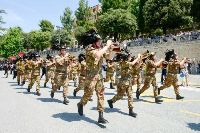 I bersaglieri di corsa conquistano Macerata. Si è concluso ai Giardini Diaz il raduno regionale dell’associazione d’arma che per due giorni ha fatto squillare le trombe delle sue fanfare nel centro della città. Tantissimi i curiosi presenti per ammirare i reggimenti e le uniformi in sfilata sotto i molteplici tricolori che ad ornamento delle strade cittadine.