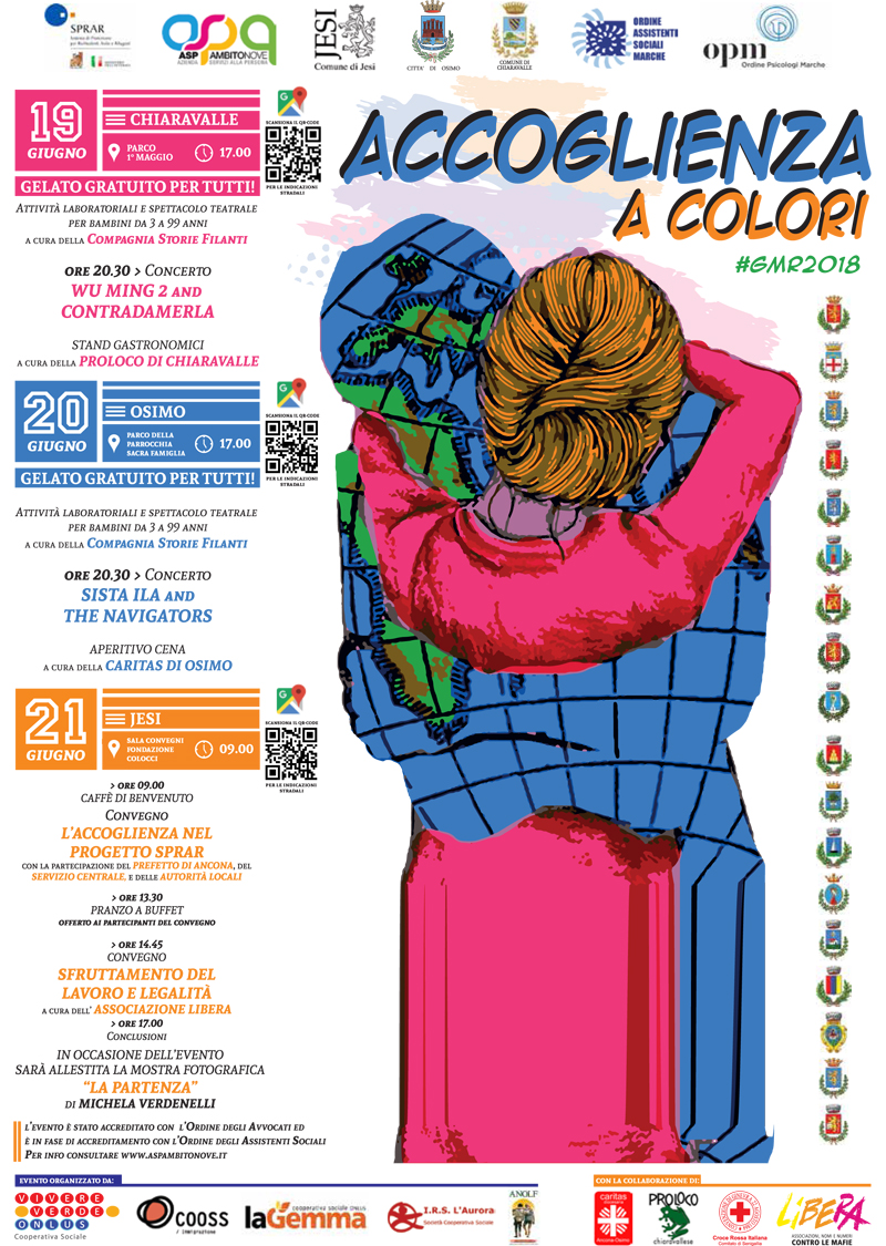In occasione di questa Giornata Mondiale del Rifugiato l’Asp9, in collaborazione con le cooperative a cui è stato affidato il servizio, organizza la manifestazione nei giorni 19-20-21 Giugno in tre Comuni diversi: Chiaravalle, Osimo e Jesi. “Lo scopo – prosegue la nota stanpa – è quello di far comprendere alla cittadinanza il lavoro svolto dai gestori del servizio, i servizi attivati a favore dei beneficiari, le loro storie e il loro percorso. Il 19 Giugno si terrà la manifestazione a Chiaravalle presso il Parco 1° Maggio dalle ore 17:00 con attività ludiche per bambini e non ed intrattenimenti vari come concerto. Il 20 Giugno si terrà la manifestazione a Osimo presso il Parco della Parrocchia Sacra Famiglia dalle ore 17:00 con attività ludiche per bambini e non ed intrattenimenti vari come concerto. Il 21 Giugno si concluderà la manifestazione a Jesi con il Convegno “Accoglienza a colori” presso la Sala Convegni della Fondazione Colocci dalle ore 9:00, che vedrà diversi professionisti affrontare tematiche legate all’accoglienza e all’integrazione sul nostro territorio. Il Convegno è accreditato all’ordine degli assistenti sociali e degli avvocati e la partecipazione è possibile previa compilazione del modulo di iscrizione. I posti sono limitati. L’accesso per tutte le tre Giornate è libero e gratuito.