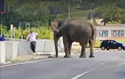 L’elefante esce dal recinto del circo e cammina libero in strada, nei pressi di una rotatoria. E’ la surreale scena che un automobilista, Mirco Cerioni, ha catturato con il suo smartphone nel primo pomeriggio di oggi mentre transitava in auto nei pressi del centro commerciale Oceano di Castelplanio. Nella zona si è attendata una carovana circense.