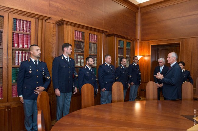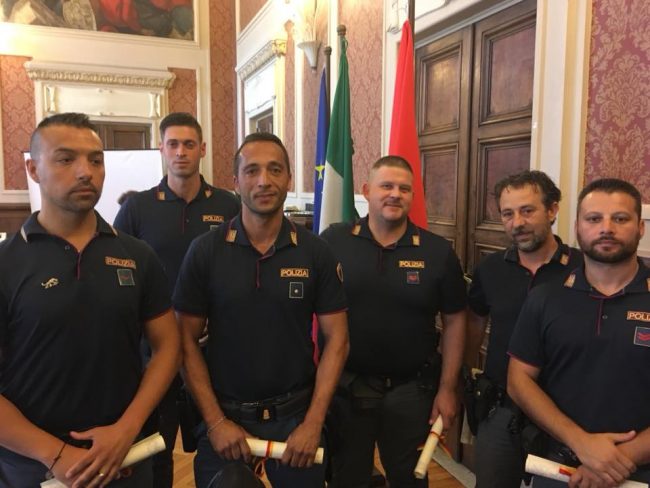 Eroi di tutti i giorni, gli agenti della squadra volante della questura di Ancona sono stati ricevuti oggi dal capo della polizia Franco Gabrielli che li ha voluti ringraziare per il loro gesto di giovedì scorso, quando sono riusciti a trarre in salvo due donne intrappolate nel sottopasso allagato di via Caduti del Lavoro. Il prefetto Gabrielli, nell’incontro avuto nel pomeriggio con i protagonisti del salvataggio, ha sottolineato come “salvare vite umane è sempre qualcosa di straordinario, ma farlo con lo spirito di squadra e con la forte coesione che avete dimostrato è un valore aggiunto”. All’incontro hanno partecipato i sei poliziotti in servizio durante il salvataggio, il vice ispettore Benedetto Fanesi, l’assistente capo Pietro Golia, l’assistente Marco Cropo, l’assistente Diego Ravarelli, l’agente scelto Simone Cingolani e l’agente scelto Andrea Fioretti, guidati dalla dirigente della squadra volanti, Cinzia Nicolini, e dal questore di Ancona, Oreste Capocasa.