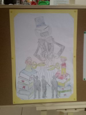 L’alunno Giordano Orsini della classe 3F del plesso di Piazzale Bellini, ha vinto il primo premio del concorso indetto dal Lions Club di Osimo. “La premiazione – prosegue il comunicato – è avvenuta il 7 giugno nel meeting del Lions di Osimo, tenutosi alla presenza della presidentessa Pina Virgili, di Maria Rita Serpilli e ci tutti gli altri componenti del Lions di Osimo. L’evento si è svolto nella magnifica cornice dei locali della Mensa del Povero in Via Soglia, per la quale il Lions contribuisce ogni anno economicamente. Alla serata è stato invitato l’alunno con la sua famiglia e la docente di Arte e Immagine, la prof. Alessia Andreoli. Dopo l’intervento delle autorità e di Maria Rita Serpilli che ha illustrato la difficoltà di acquisizione della cittadinanza italiana da parte degli stranieri nati in Italia, è giunto il momento atteso della premiazione del nostro alunno. Intervistato, l’alunno Giordano Orsini ha spiegato il significato del suo elaborato, meravigliando i presenti per la semplicità, bellezza ed immediatezza di quanto il suo disegno trasmette: La sapienza e la cultura tagliano i fili della guerra mossa dal mostro “burattinaio” che rappresenta il potere. L’ispirazione, dice Giordano, mi è arrivata studiando la prima guerra mondiale! Il poster 33×50 cm è il risultato dell’immagine positiva della cultura contro quella negativa della guerra, che il ragazzo ha voluto comunicare”.