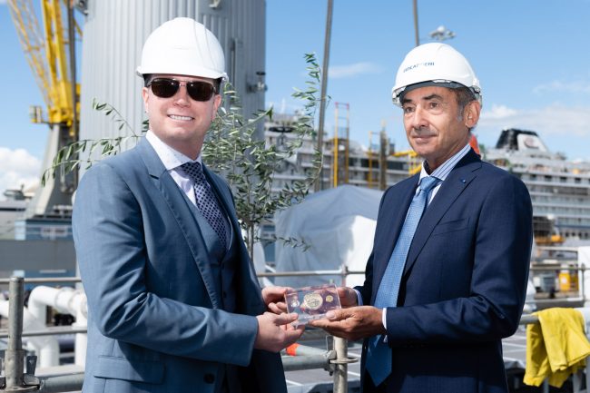 Giovanni Stecconi, direttore dello stabilimento di Ancona e Jason Montague, presidente e amministratore delegato di Regent Seven Seas Cruises