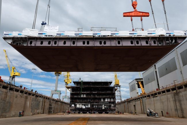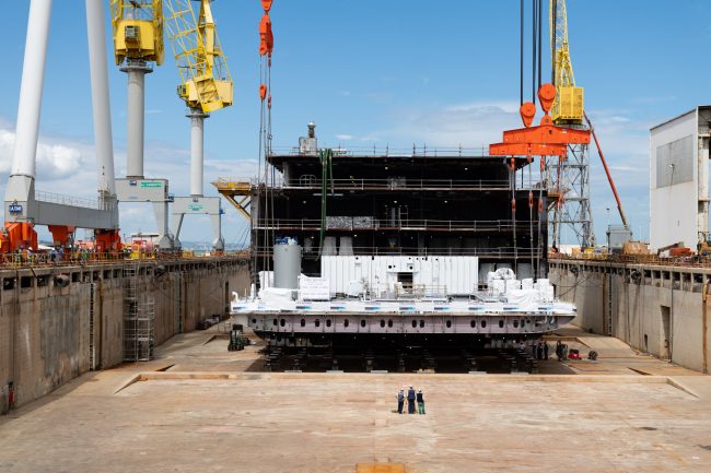 Dopo la serie delle Viking, Fincantieri al lavoro nella seconda nave per l’armatore Regent Seven Seas Cruises, marchio del gruppo Norwegian Cruise. È iniziata oggi l’impostazione in bacino della Seven Seas Splendor, la consegna è prevista per il 2020. Per la società armatrice, tra gli altri, era presente Jason Montague, Presidente e CEO di Regent Seven Seas Cruises, accolto da Giovanni Stecconi, Direttore dello stabilimento Fincantieri di Ancona. Come la gemella “Seven Seas Explorer”, consegnata da Fincantieri dallo stabilimento di Sestri Ponente nel 2016, la nuova unità avrà 55.000 tonnellate di stazza lorda e potrà ospitare a bordo 750 passeggeri in 375 ampie suite per un totale di 224 metri di lunghezza. Sarà costruita adottando le più avanzate tecnologie in tema di protezione ambientale. L’allestimento sarà particolarmente ricercato e sarà prestata molta attenzione al comfort per i passeggeri. “Seven Seas Explorer ha ottenuto notevoli consensi sin dal suo debutto nel 2016 come la nave più lussuosa mai costruita. La sua gemella, Seven Seas Splendor, si basa su questo successo, cercando di perfezionare ulteriormente l’idea di lusso senza compromessi sul mare”, ha dichiarato Jason Montague, presidente e amministratore delegato di Regent Seven Seas Cruises.