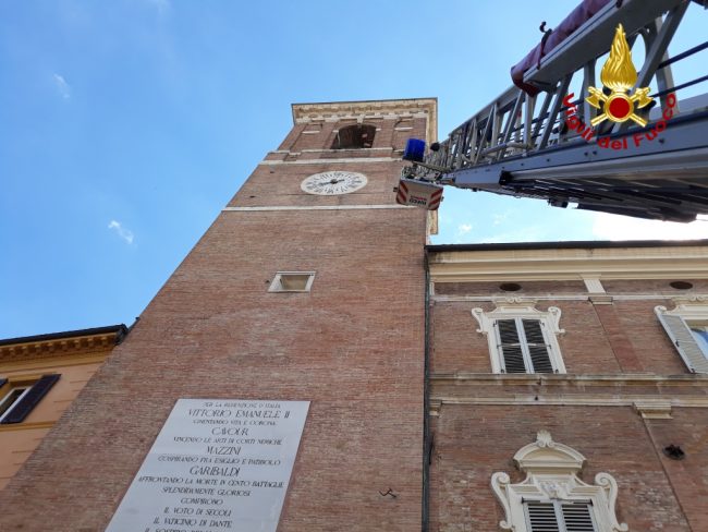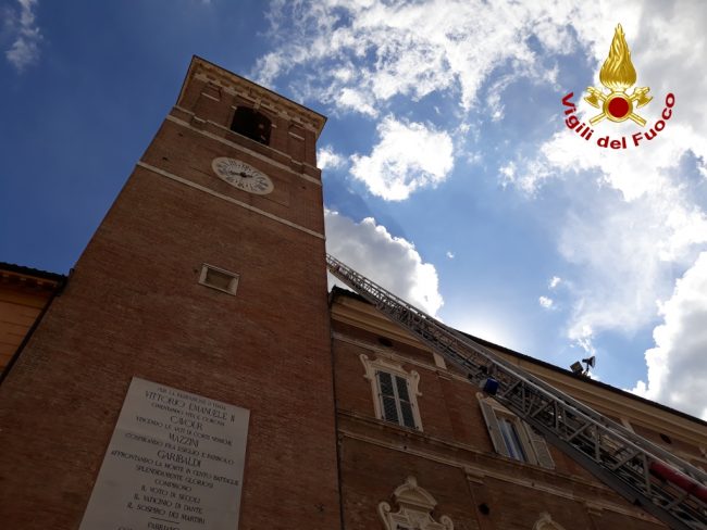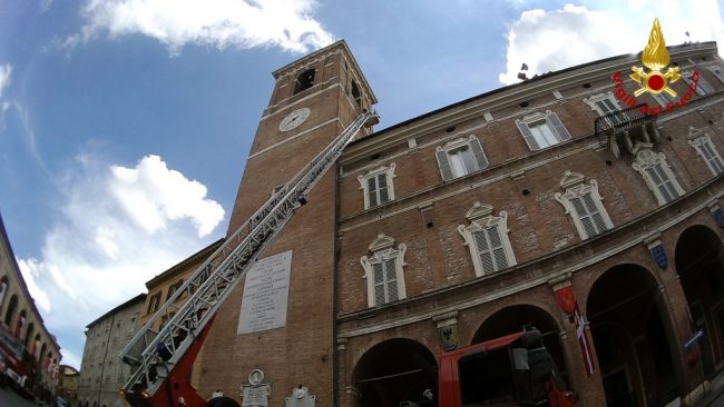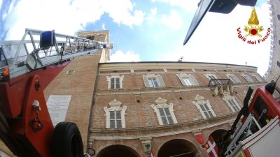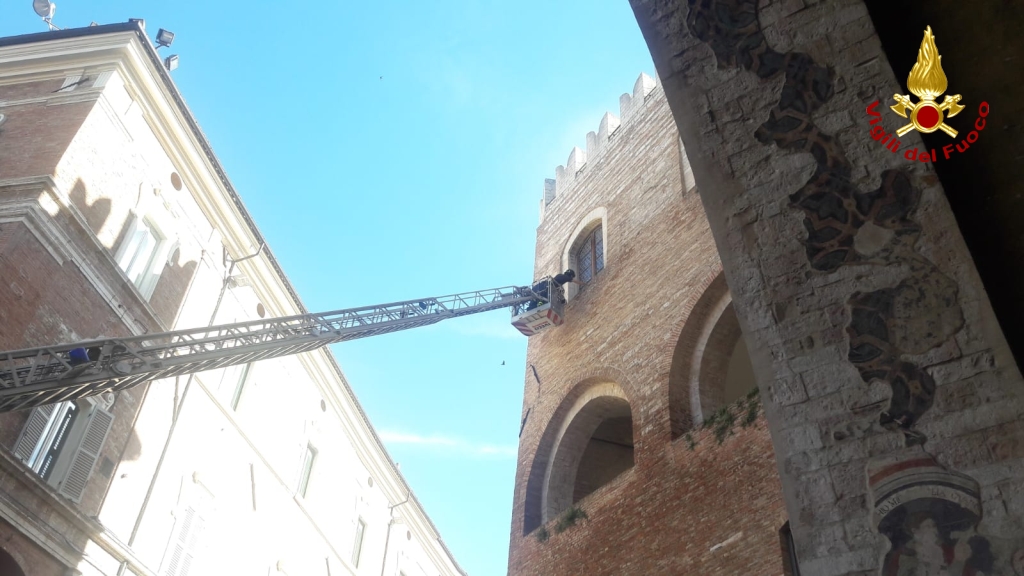 Nel pomeriggio di ieri 29 giugno, i vigili del fuoco sono intervenuti a Fabriano presso la torre civica e il palazzo comunale per la messa in sicurezza delle mura esterne. Utilizzando l’autoscala e tecniche S.A.F. (speleo, alpino fluviale) i vigili del fuoco hanno rimosso la vegetazione cresciuta sulle mura esterne. Le radici della vegetazione hanno provocato il distacco di numerosi mattoni creando pericolo al sottostante pedonale. Non si segnalano persone coinvolte.