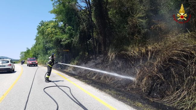 Due incendi di sterpaglie divampati a pochi chilometri e a poche ore di distanza l’uno dell’altro. Dopo aver spento il fuoco scoppiato lungo la linea ferrovia stamattina alle 11 in zona Aspio. Dopo le 14 di oggi si è acceso un altro rogo sempre sul territorio comunale di Camerano sul ciglio di via Direttissima del Conero proprio in prossimità del tratto che costeggia il cantiere del nuovo ospedale Inrca dell’Aspio, alla seconda rotatoria dell’Ikea. I vigili del fuco della centrale di Ancona intervenuti con due automezzi e sette vigili, ed hanno spento le fiamme evitando la propagazione, bonificando in seguito anche l’area. Non si segnalano persone coinvolte.