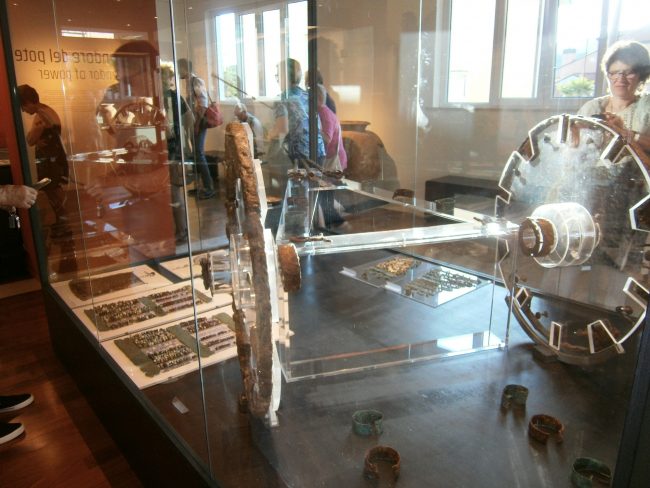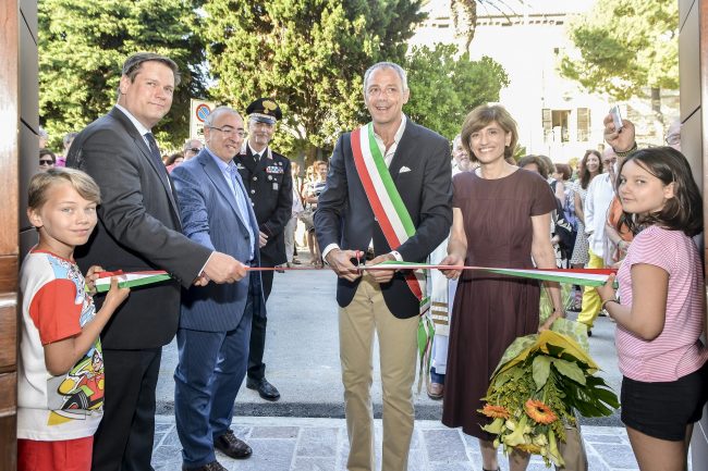 Numana riscopre le sue origini antiche e rimette a nuovo il museo Antiquarium. Nel pomeriggio di sabato si è tenuta la cerimonia di riapertura del museo, dopo i lavori di ristrutturazione, tornano dunque visibili al pubblico il patrimonio di reperti dell’archeologia Picena unici al mondo tra cui una parte del corredo della cosiddetta “tomba della Regina”. Grazie ad un finanziamento europeo, il museo è stato completamente rinnovato sia esternamente, con un grande pannello-insegna con il novo logo, sia internamente con un rifacimento completo delle stanze, una nuova disposizione dei reperti e soprattutto degli infissi che permettono al visitatore di far spaziare lo sguardo sullo splendido panorama della Riviera. Presenti all’inaugurazione, oltre al sindaco Gianluigi Tombolini, l’assessore regionale al Turismo Moreno Pieroni, il direttore della Galleria Nazionale delle Marche, Peter Aufreiter, e Nicoletta Frapiccini, direttore del Museo Archeologico delle Marche. Il sindaco Tombolini ha affermato con orgoglio che dall’arrivo dei finanziamenti alla conclusione dei lavori sono intercorsi solo 3 mesi. Tale decisione è stata fortemente voluta dall’amministrazione per far si che la stagione turistica potesse iniziare con un’attrazione dalla valenza altamente culturale. Nel suo intervento l’assessore Pieroni ha poi ribadito l’interesse della Regione a finanziare in modo ancora più corposo anche la ristrutturazione della ex scuola Elia, vicina all’Antiquarium, per la creazione di un centro studi dedicato alla civiltà picena ed ai suoi numerosi reperti ancora da studiare. Peter Aufreiter nel suo intervento ha voluto mettere in risalto l’importanza di un turismo basato non solo sulle bellezze naturali e sulle valenze gastronomiche, ma anche sulla fruizione di tutte le ricchezze artistiche e culturali di cui Numana è dotata; i “pezzi unici al mondo” esposti all’Antiquiarium, meritavano una struttura che li sapesse accogliere e proteggere nel migliore dei modi.