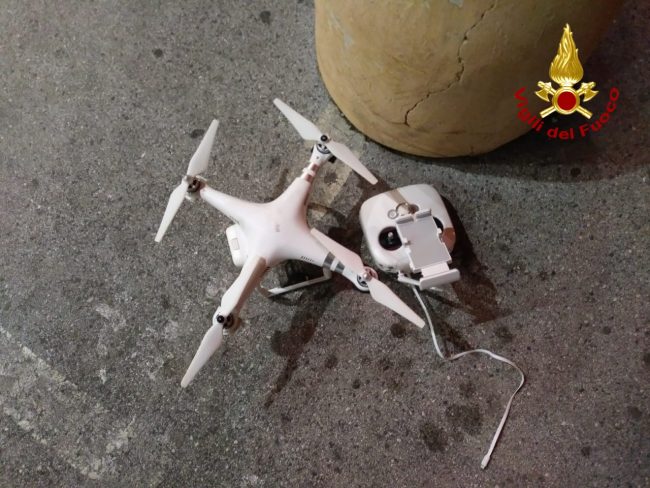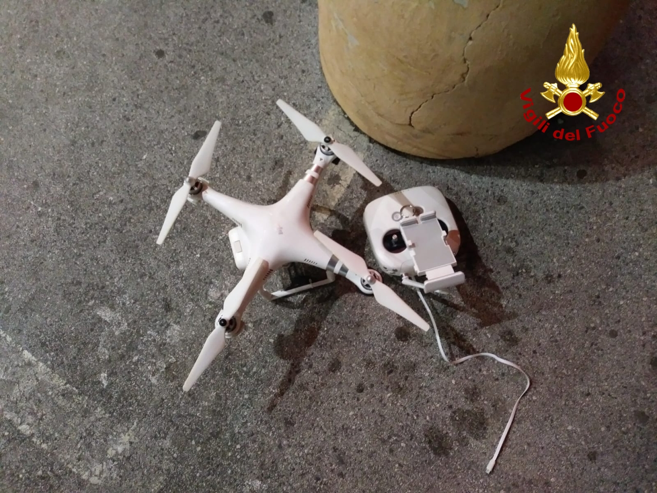 MONTEMARCIANO - E' successo ieri sera alle 22. Il proprietario dell'aeromobile a pilotaggio remoto lo stava provando in spiaggia quando è precipitato. L'hanno ritrovato i vigili del fuoco usando tecniche SAF