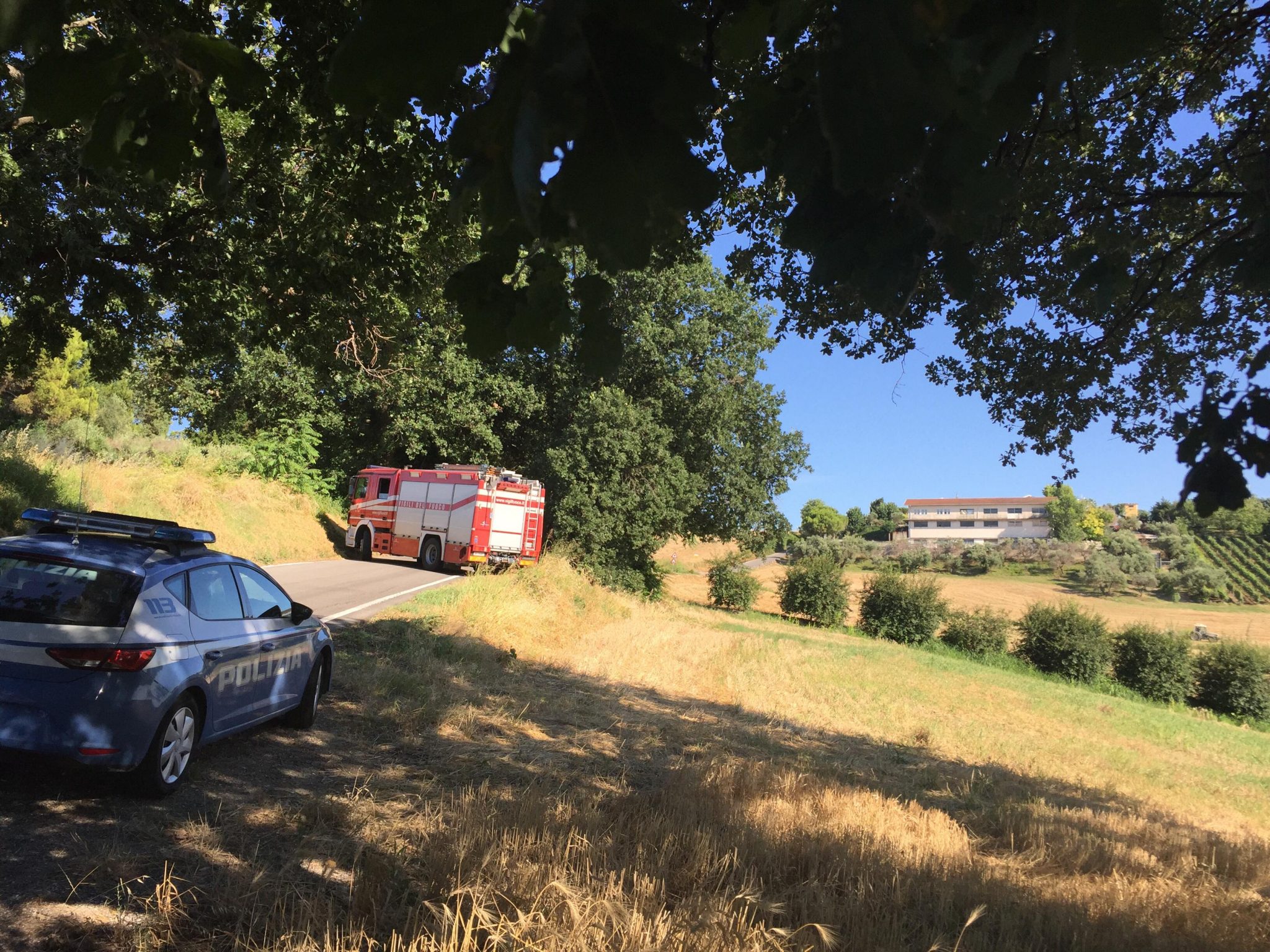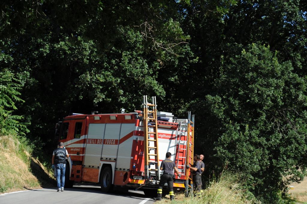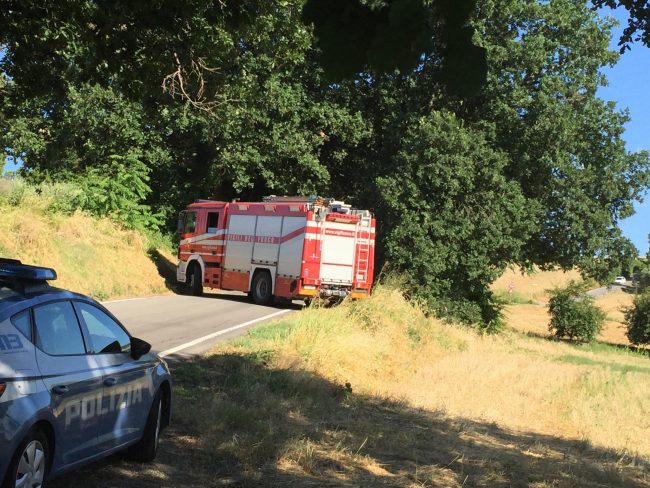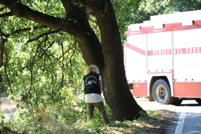 Tragedia sulla strada di Passo Varano: un uomo oggi pomeriggio è stato trovato privo di vita, impiccato a un albero. Avrebbe circa 50 anni. Con sè non aveva i documenti. Sul posto, la Croce Gialla di Ancona, i vigili del fuoco e la polizia per i rilievi scientifici e cercare l’identità della vittima. L’allarme è stato lanciato verso le 15 da un passante che ha notato quel corpo. Dalle prime sommarie informazioni, l’uomo, che non sarebbe deceduto molte ore prima di essere ritrovato, indosserebbe una polo marrone, dei bermuda beige con tasconi e scarpe sportive. Potrebbe essersi addentrato a piedi in quella zona. La polizia non ha infatti trovato ne’ auto ne’ moto posteggiate o abbandonate nei pressi dell’area. La salma, dopo i rilievi scientifici,  su disposizione della magistratura, è stata trasferita all’obitorio dell’ospedale regionale di Torrette.