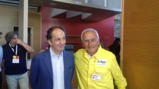 Al convegno di Ancona il dottor Vincenzo Calia, il magistrato che ha risolto il Caso Mattei, insieme con un ex dipendente Agip, Sebastiano Gubinelli