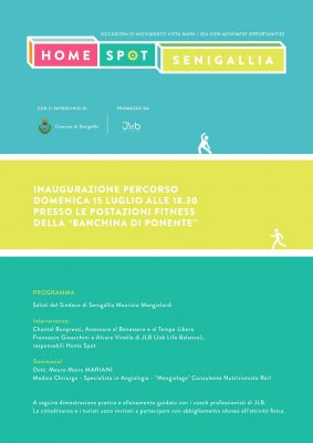 “Home Spot – aggiunge l’assessore Bomprezzi – permetterà alle tante persone che sul lungomare svolgono quotidianamente attività fisica di sfruttare al meglio le cinque stazioni del circuito inaugurato nel 2016, grazie ai consigli e ai suggerimenti dei professionisti di Job Life Balance”. “Home Spot – spiegano Francesco Gioacchini e Alvaro Vinella di JLB, responsabili Home Spot – connette in maniera innovativa l’attività fisica e il benessere alle bellezze di Senigallia. Il percorso lungomare e le postazioni fitness sono soltanto il primo step di un progetto molto più ampio che prevede lo sviluppo di ulteriori itinerari, culturali e nei parchi, alla scoperta del territorio. Il servizio è gratuito e il nostro obiettivo è di renderlo fruibile a tutti, collaborando e dialogando con le aziende locali di settore (palestre e centri fitness) e con tutti coloro che hanno attività commerciali inerenti il nostro progetto. Grazie alla tecnologia che sta alla base di Home Spot siamo in grado di aggiornare costantemente i contenuti e di focalizzare le attività in base alle esigenze degli utenti. Sono infatti previste iniziative durante le quali il percorso sarà dedicato ad esempio alla prevenzione di patologie metaboliche e cardiopatie in collaborazione con l’Asur, alle mamme con passeggini o in dolce attesa, e alle associazioni cinofile”. Al termine dell’inaugurazione seguirà una dimostrazione pratica e un allenamento guidato con i coach professionisti di JLB.