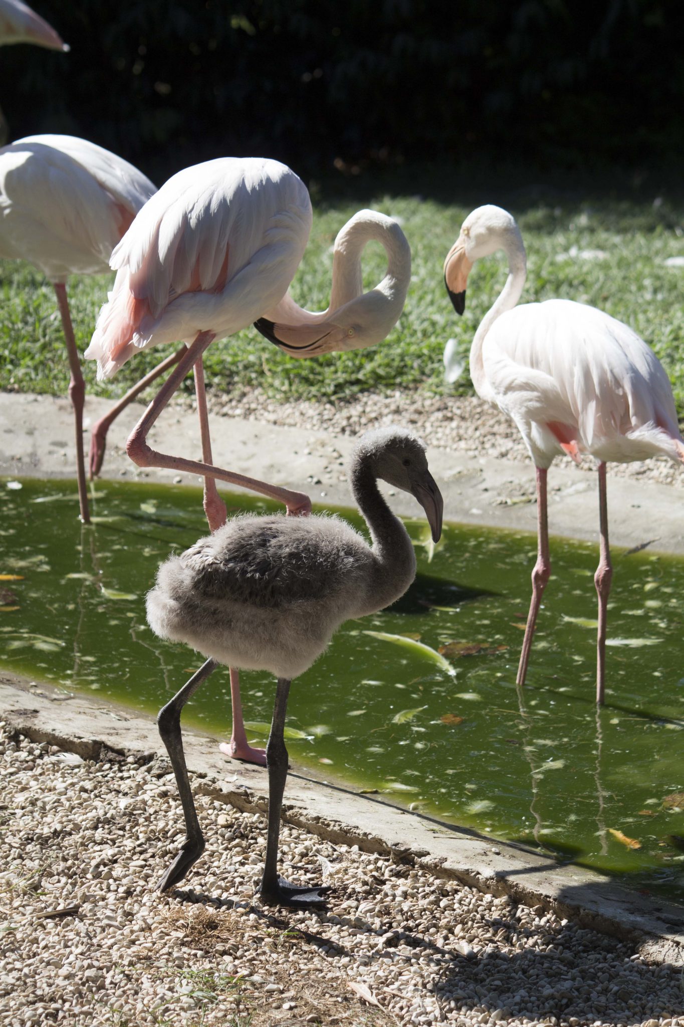 Lieto evento al Parco Zoo Falconara, dove sono nati tre fenicotteri rosa. Al momento i pulcini non sono ancora slanciati ed eleganti come gli adulti e presentano vaporose piume grigie. Cambieranno completamente colore quando compiranno quattro anni, grazie al carotenoide presente nel cibo ed in particolare nell’Artemia salina, il minuscolo crostaceo di cui sono ghiotti e dal quale assorbono il pigmento che pian piano contribuirà a tingere le loro penne di rosa. Le uova, covate sia dalla mamma che dal papà per circa un mese, si sono schiuse nei giorni scorsi ed i piccoli hanno fatto capolino nel nido costruito con il becco dai genitori nell’isoletta all’interno del reparto che li ospita. Dei tre baby fenicotteri non si conosce ancora il sesso, che verrà determinato con l’analisi genetica, effettuata al momento dell’applicazione del microchip. I nuovi nati si aggiungono alla colonia dei 30 fenicotteri rosa già presenti al Parco Zoo Falconara. I piccoli hanno già iniziato a reggersi sulle zampe e a girovagare, attentamente seguiti da mamma e papà. Entrambi i genitori, infatti, dopo essersi alternati nella cova, si preoccupano a turno di accudire i figlioletti e di nutrirli con una sostanza particolare prodotta dal loro tratto digestivo.