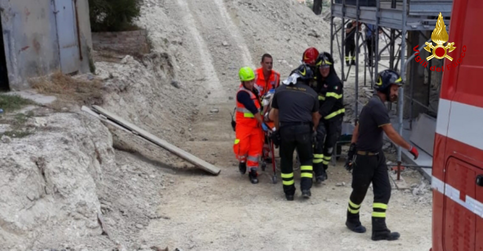 Il tetto della casa colonica in ristrutturazione, nel cantiere edile di via Colle Lauro 17, a Camerano, è crollato e l’operaio che vi stava lavorando sopra è precipitato tra le macerie. Un volo di almeno 3 metri prima di cadere sul pavimento del piano sottostante, che verso le 11.30, gli ha provocato sospetti politraumi e ha messo in moto i soccorsi. Sul posto oltre a un’ambulanza della Croce Gialla di Camerano è arrivata l’eliambulanza dall’ospedale di Torrette. I vigili del fuoco di Osimo e Ancona, con le tecniche Saf sono riusciti a raggiungere l’uomo, B.A. 62 anni di Offagna, titolare dell’impresa edile che sta svolgendo i lavori di ristrutturazione e rimozione delle tegole dalla copertura. Lo hanno riportato al pianoterra dopo aver calato la barella e imbragato il ferito dall’apertura del tetto. Poi lo hanno consegnato alle cure dei sanitari.